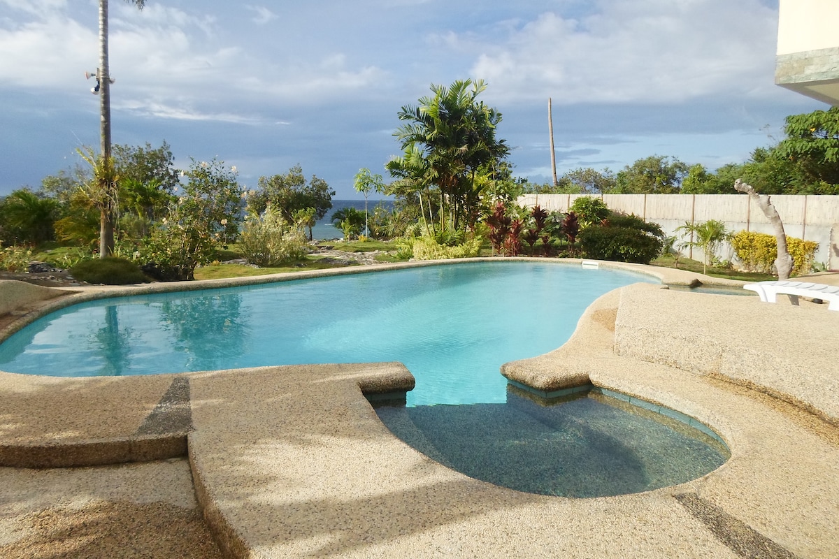 Come enjoy our spacious Bungalow near oceanfront on the cliff overlooking the beautiful waters Bohol Strait. Our guest bungalow offers one large bedroom with air-con and providing accommodations for 2 guests. Enjoy your morning coffee on the patio. Dive into our crystal clear, chlorine-free pool for a refreshing break. Walk down the cliff steps to jump in the ocean for incredible snorkeling, the incredible reef filled with tropical fish and coral, right in front of the property. Just enjoy!!