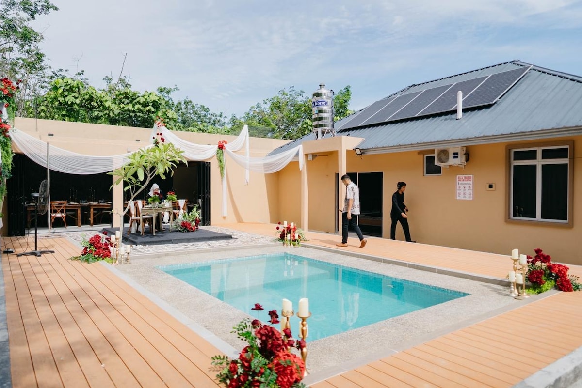 A cozy and relaxing villa in A’famosa (newly renovated). ✅5 Rooms with 1 Queen and 1 single bed (with Air-cond) ✅2 Toilets with Water Heater Amenities: 🔆PrivatePool 🔆BBQ set 🔆KARAOKE Set 🔆Free WIFI 🔆SmartTV with Netflix 🔆Iron and Ironing Board 🔆HairDryer 🔆Microwave 🔆Electric Kettle 🔆Outdoor Area 🔆Blankets 🔆Shampoo 🔆Induction Cooker 🔆Cooking utensils ‼️We do sanitise and change bedsheets b4/after every guest check in/ out