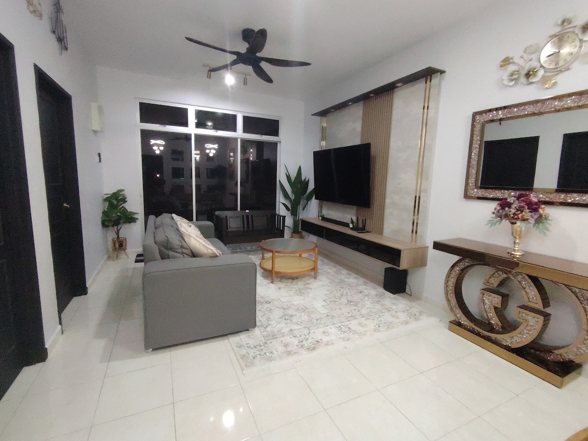 Modern English Concept with Peaceful vibes. Fully air-conditioned 4 bedroom 3 bathrooms with water heater Extra mattress and pillows Facilities: • Wifi provided • Android TV with Astro Channel, Sport, Netflix • Stove, Refrigerator, Water dispenser • Outdoor CCTV Important rule: Pet,pork and alcohol are STRICTLY PROHIBITED