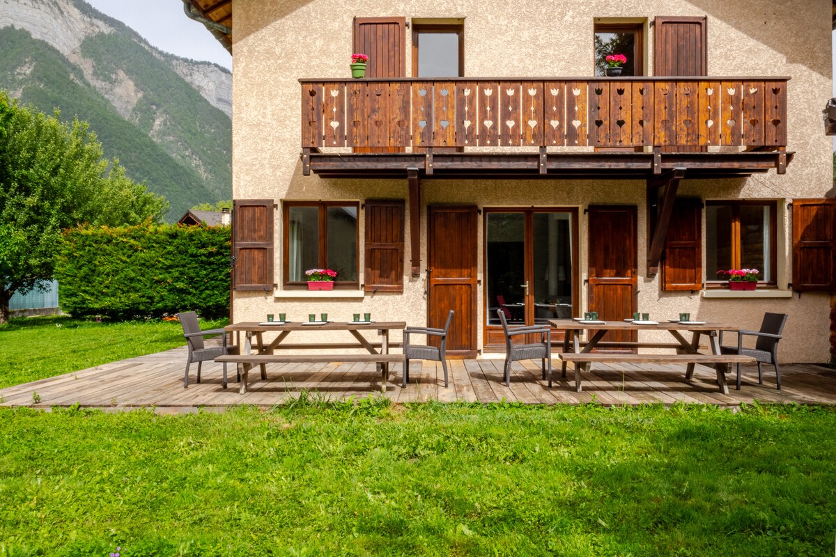 Superb spacious villa for 11 peoples vert comfortable,consists of 5 bedrooms with quality bedding,2 bathrooms,a spacious living room and a large Free parking lot. Il is surrounded by mountains and greenery. In the heart of the Oisans massif and 6 minutes walk from the village center. 10 minutes by car from the valley lift: The Huez Express gondola connecting the ski resort Alpe d’Huez and l’Eau Dolle Express. The Venosc gondola connecting the ski resort of les 2 Alpes.