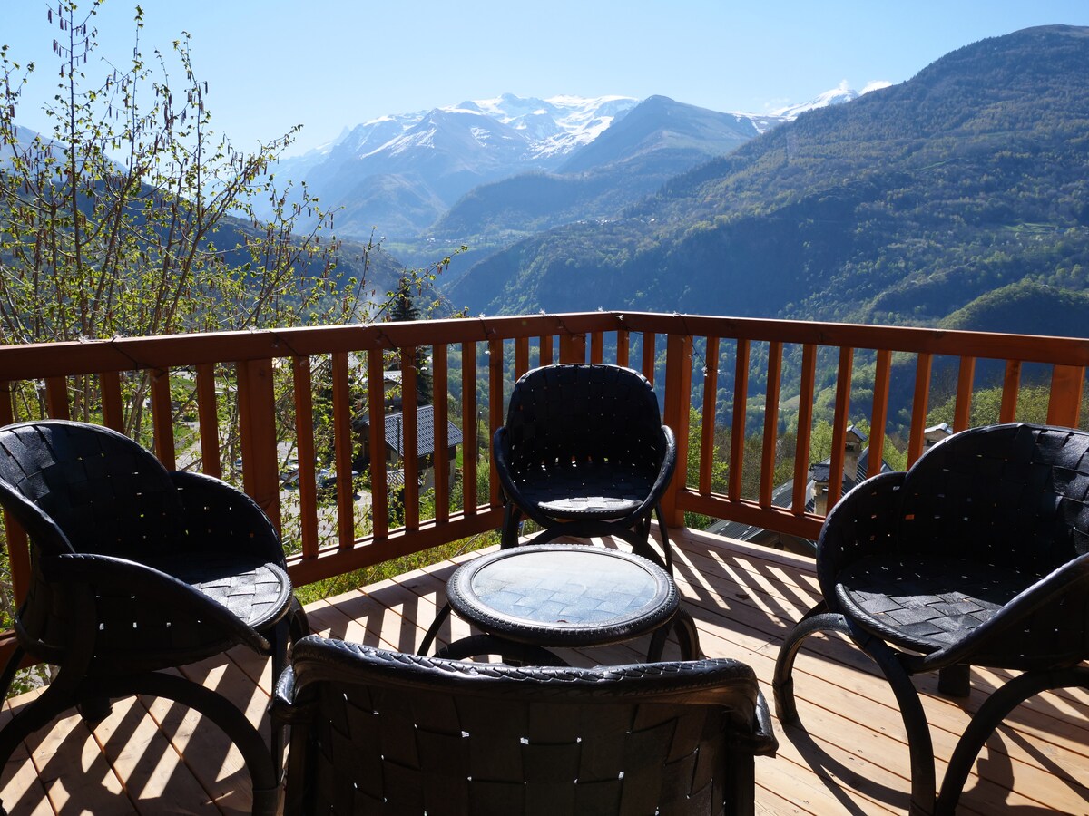 Magnifique chalet avec d'imposantes baies vitrées offrant une vue panoramique sur les montagnes environnantes. Profitez du calme et de la nature, à proximité du grand domaine skiable des 2 Alpes : Le Chalet des Amis est situé à 6 minutes à pied du Télécabine de Venosc qui vous emmènera aux 2 Alpes. Une perle rare face à la montagne aménagée avec gout et confort pour accueillir votre tribu, le Chalet des Amis est très bien pensé pour accueillir jusqu'à 14 personnes.
