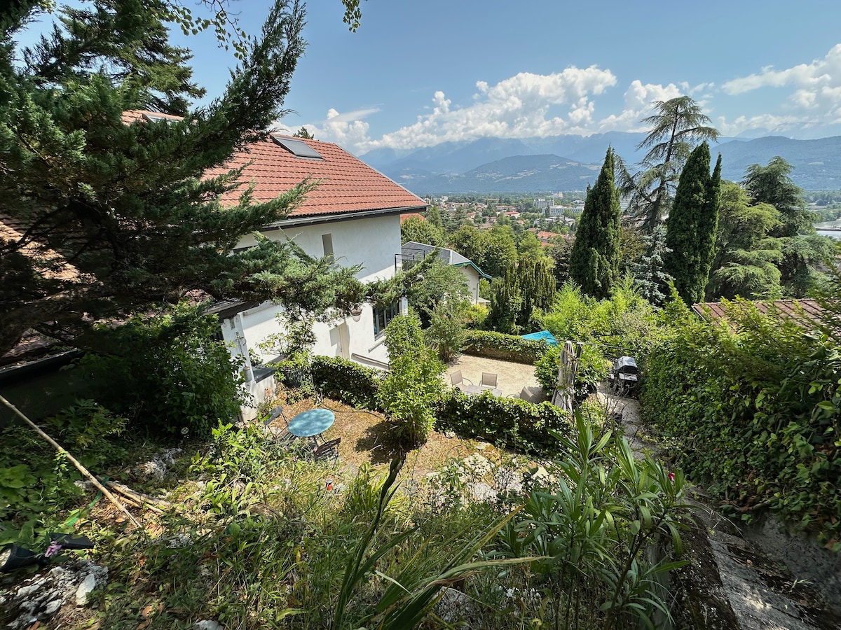 Hébergement insolite, petit cocon, idéal pour personne seule ou en couple à la recherche de quiétude. Piscine privée du propriétaire partagée, vue imprenable sur les montagnes. Ce lieu très verdoyant est parfait pour les flâneurs, sportifs : randonneurs, cyclistes, parapentistes, trailers, kitesurfers, skieurs. Confort et ambiance cosy garantis! Le Chalet se situe sur la commune de St Martin D’Uriage, à 15 min de la station de ski familiale Chamrousse, à 20 min de Grenoble.