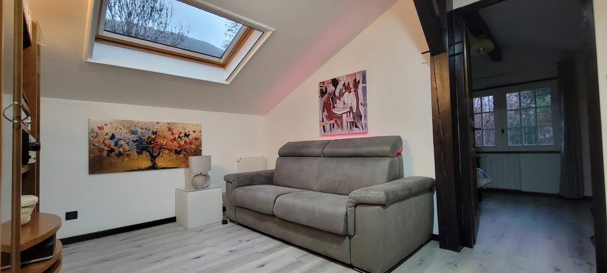 Unique property – a rare gem not to be missed in Chamrousse – Le Recoin! Bright and spacious 25m² studio, loft-style, featuring a jacuzzi bathtub. Modern and cozy design, fully renovated and perfectly equipped – just drop your bags and enjoy this relaxing cocoon! A comfy place, ideal for a long stay, romantic ski getaway weekend or a business week away. Looking forward to welcoming you soon in Chamrousse! Anna