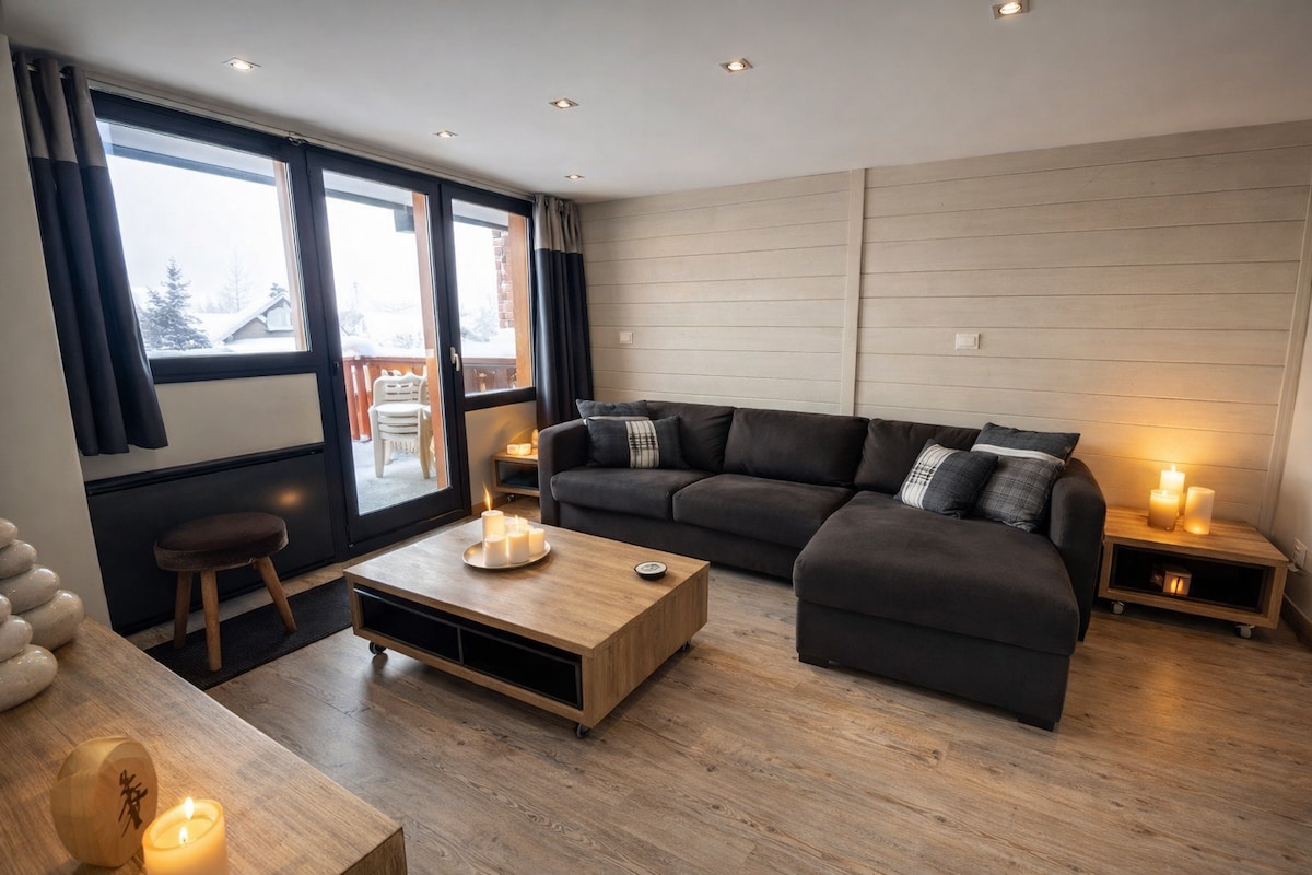 120平方米,面向滑雪道,位于滑雪中心,配有桑拿和按摩浴缸,双车库,以及储藏室!
