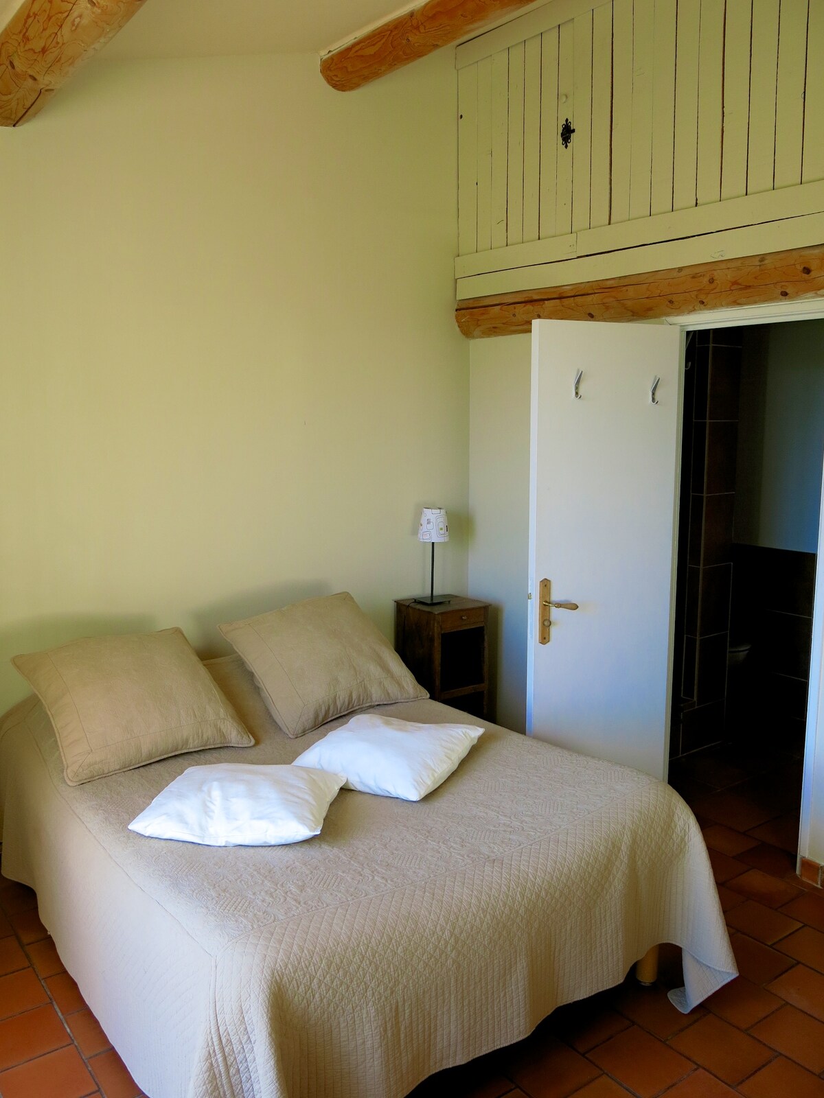 Deux chambres, une salle de bain attenante à l'une des chambres et une terrasse privative offrant une vue magnifique sur les montagnes et le plateau de Valensole. Un espace, attenant à votre suite est équipé d'un frigo, d'un micro onde, d'une machine à café et de vaisselle. L'ensemble vous est réservé pendant votre séjour. Votre suite est la seule location de notre maison et elle n'est pas mitoyenne à nos chambres. Au rez-de-chaussée nous pouvons partager notre cuisine si vous le souhaitez.