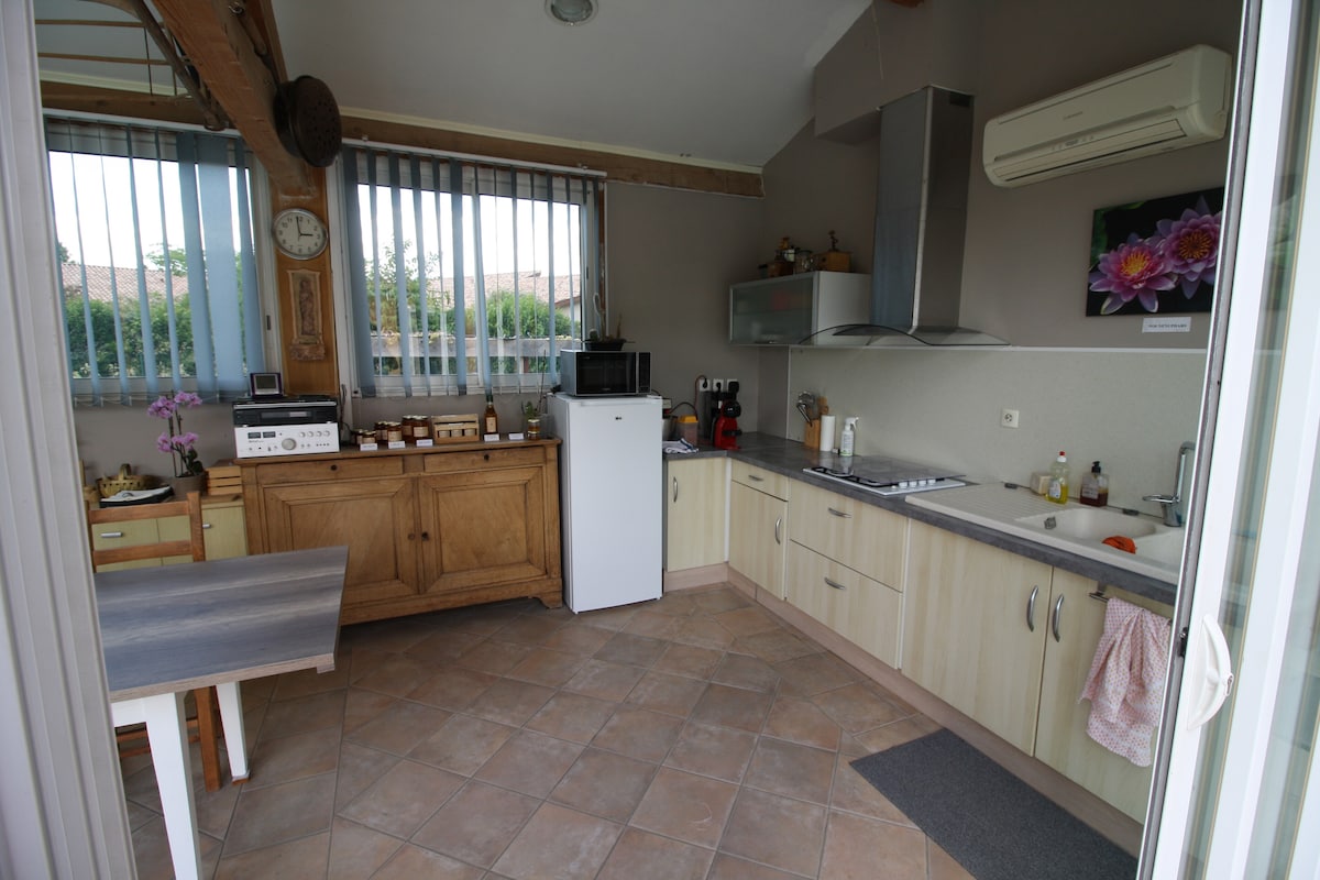 Maison familiale proche du centre ville avec la possibilité de laisser la voiture au parking clos équipé d'une borne de recharge lente. Les salles de douches sont privatives. Ne vous chargez pas d'un sèche cheveux il fait partie des petites attentions tout comme le plateau de courtoisie placé dans chaque chambre. Le petit déjeuner est sympathique avec confitures et miel maison. Un coin cuisine tout équipé est à votre disposition avec accès à la piscine ainsi qu'un fer et table à repasser..