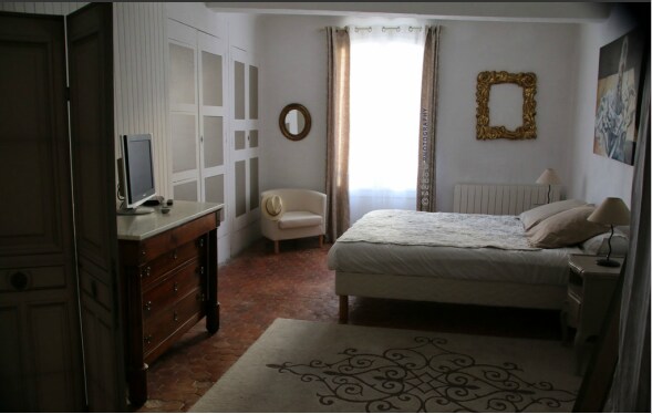 Chambre spacieuse et chaleureuse en bois et parquet de 18 m2 avec un lit Queen Size, dunlopillo. Vous disposez d'une salle d'eau privative et de toilettes individuelles; chauffage central, double vitrage, connexion Wifi, TV 100 cm. Cintres et étagères. La literie, les serviettes et les articles de toilette sont fournis. Petits déjeuners inclus ( boisson chaudes, pain frais, beurre, confitures, fruits, yaourt, jus de fruits, friandises ).
