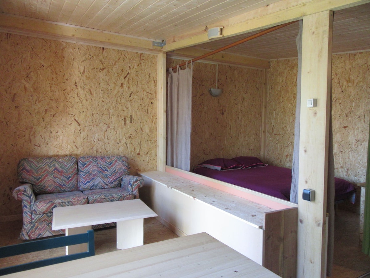 L'attrape Reves..Chambre privée indépendante de 12 m2, avec jardin privatif et terrasse..style chalet en bois. Lit 140, douche,wc..Télé,Wifi,mini frigo...draps et serviettes de toilette...Accès piscine l'été avec Aquabike a disposition.....Emplacement véhicule dans jardin cloturé..... originalité, calme,nature,tranquilité.. Petit déjeuner a la demande, huit euros /personne en supplément a régler sur place.