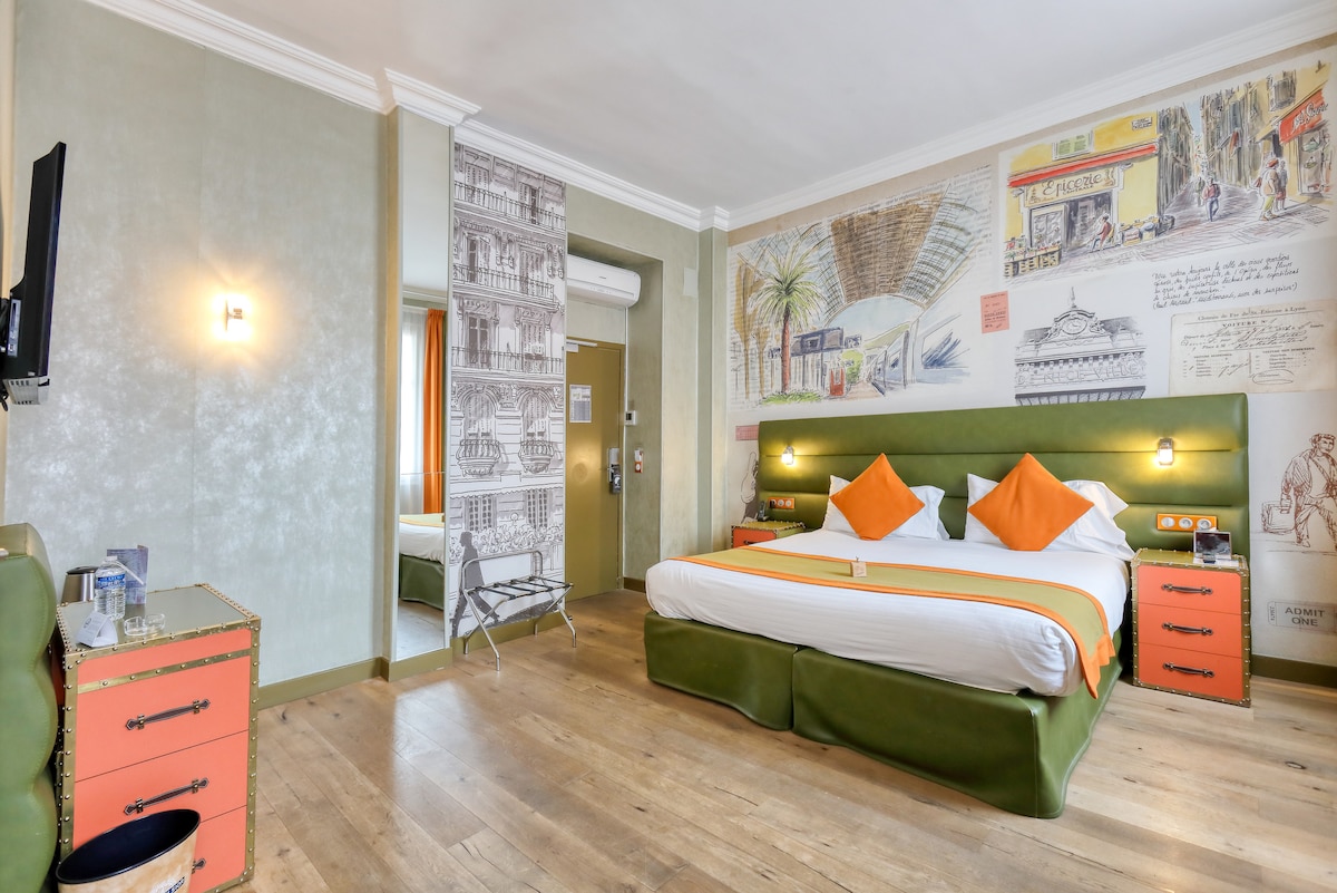 This room, with a surface area of 16 m², can accommodate one or two people. It is equipped with a double bed. The services offered: air conditioning, free high-speed Wifi, TV with Canal + and video on demand, safe, Nespresso coffee machine...