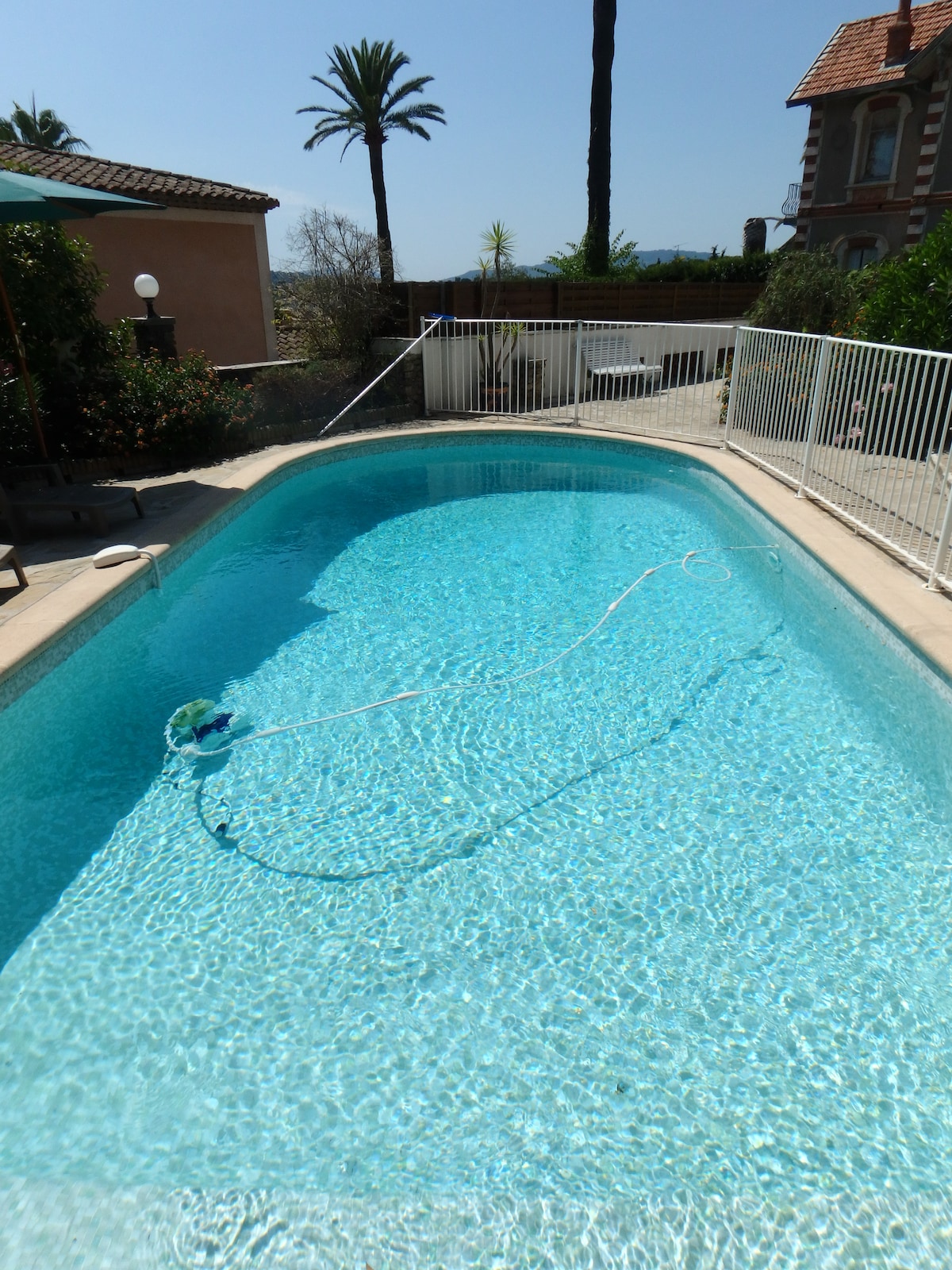 Bagnols en Forêt, dans un domaine fermé, calme, studio climatisé 25 m², (dans villa 2019-entrée indépendante) tout confort, 2 personnes -ni enfant, ni bébé-. Il comprend 1 pièce de vie avec kitchinette équipée, coin salon avec canapé lit, télévision, rangement. 1 chambre 1 lit (160 x 200) et son espace douche, placard, toilette séparée. A disposition parking, piscine (8x4) partagée avec le propriétaire, terrasse avec table, chaises, plancha, transats, parasol, douche. Non fumeur, pas d’animaux.
