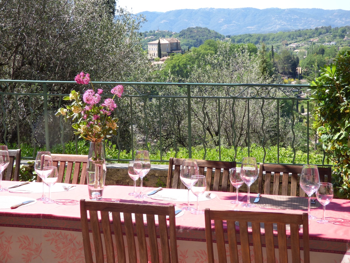 A studio with a stunning view and a sun drenched balcony. While the hustle and bustle of the Côte d'Azur beach area is only 25 mins drive away, we are in the Regional Natural Park of Préalpes d'Azur, full of outdoor activity opportunities such as river swimming and scenic trails. The Studio has access to a pool (May to October). Please note, this place is non-smoking. The owners are keen cyclists and the house is equipped with a basic workshop and bike storage for the guests.