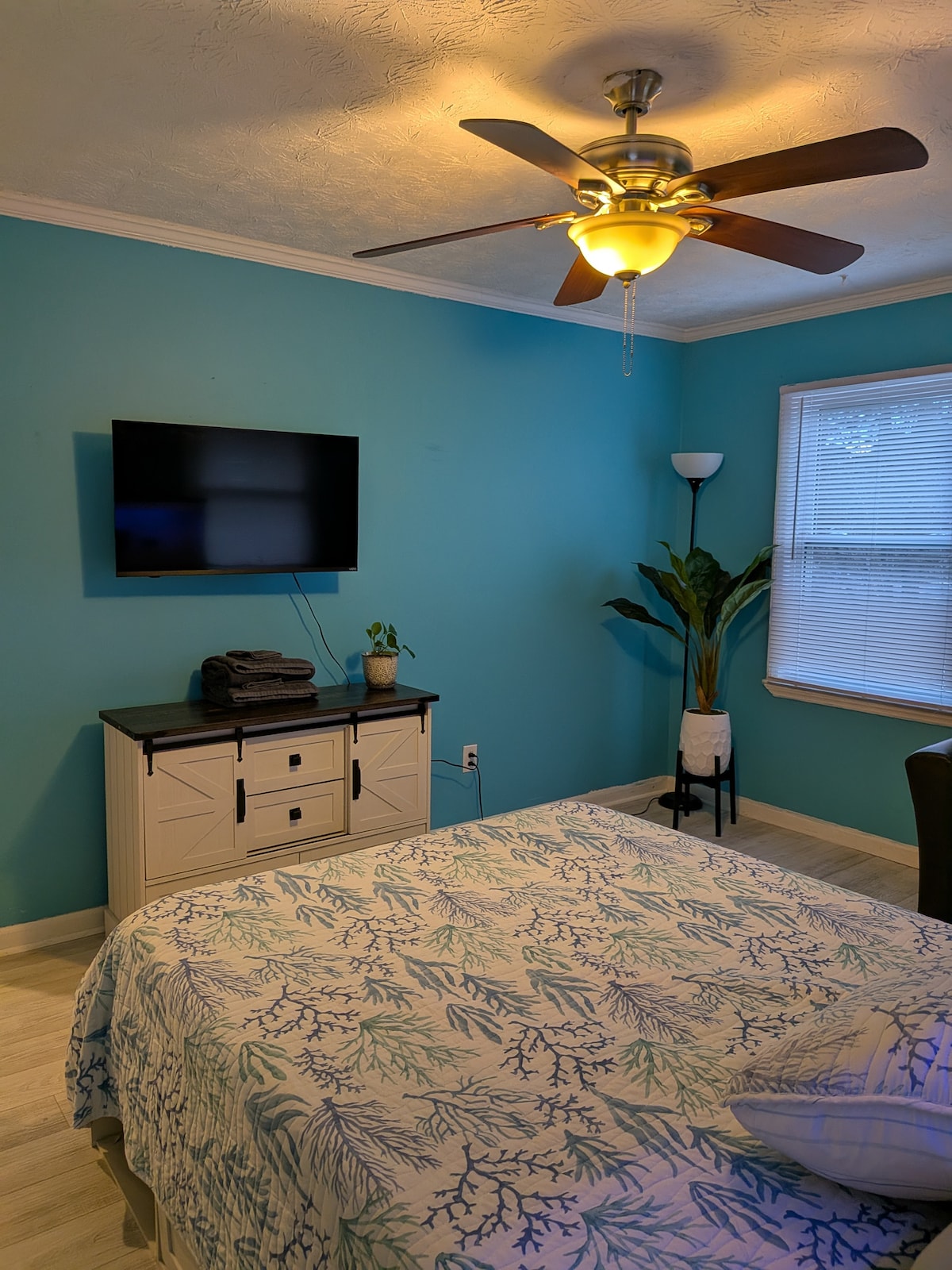Come Stay at our tiny farmstead! Great Location just inside the ATL perimeter. Keyless Private Entrance Dedicated Parking Spot Light-filled open space Full Functional Kitchen Full Bath Private Patio, gated 8' privacy fence Simple Complementary Breakfast High speed fiber internet with Wi-Fi 6 speeds Level 2 charging with NEMA 14-50 plug /50 amps Separate Work Space TV with Streaming Services