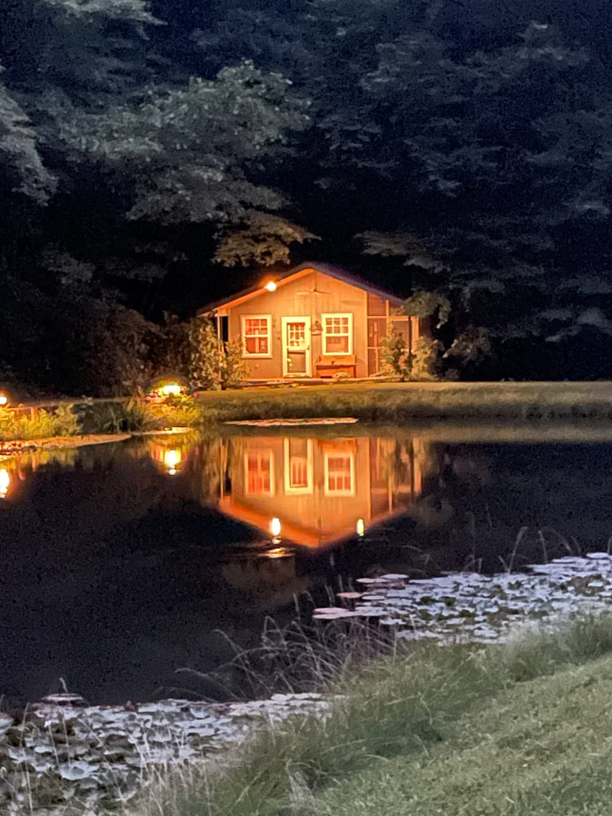 A nice, romantic cabin like pool house, two stories, all wooden interior and finished living room, bedroom and bathroom. Beautiful view of woods and pool from deck and balcony. Flat screen, gas fire place, and Pool available but not heated in the winter. The cabin offer place to sleep for 4 people, two in the bedroom with queen size bed and two in de banquets of the living-room. Please respect our rate schedule additional guests after the first 4 are required to pay $25/night per person.