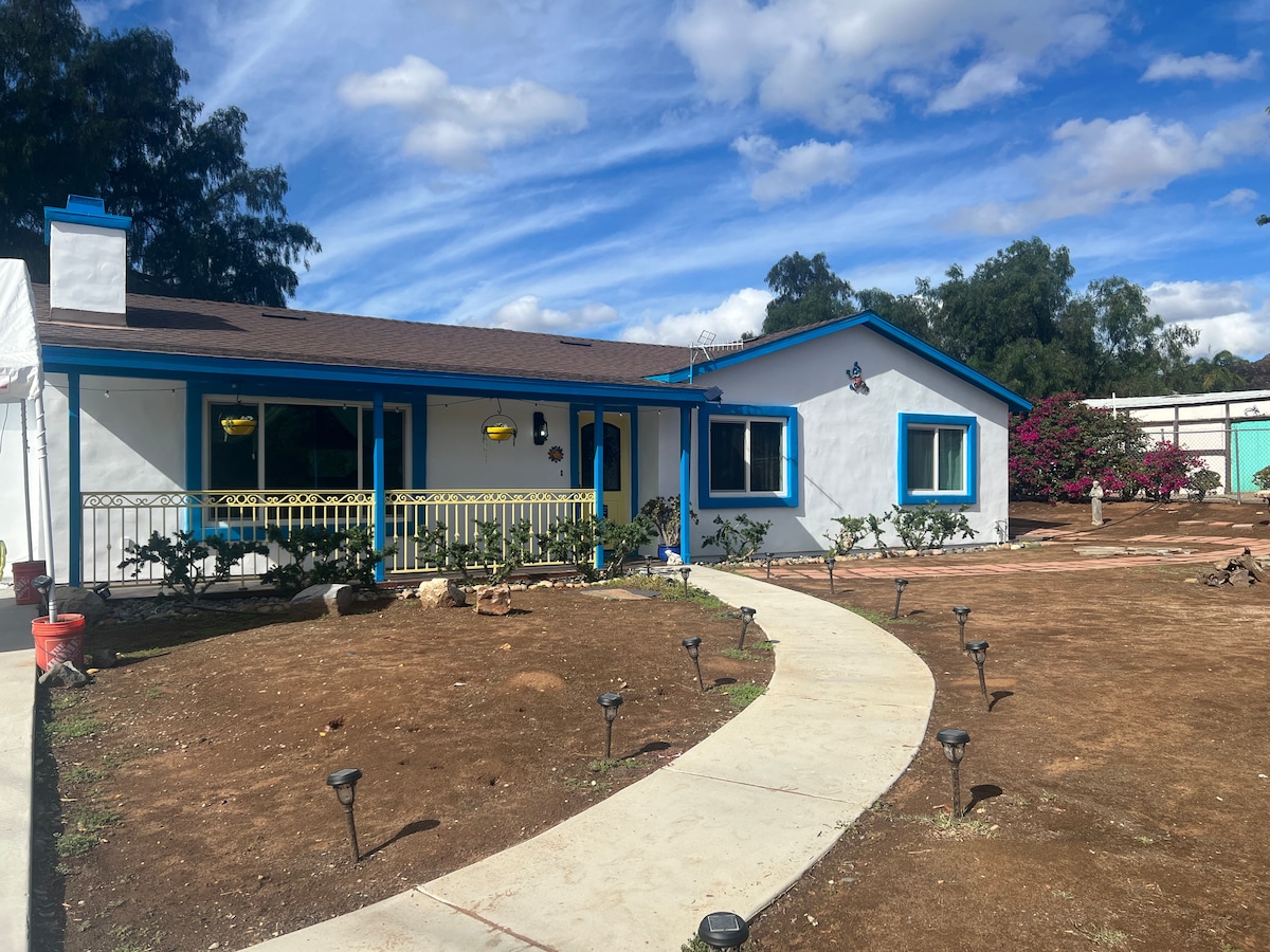 Kick back and relax in this private cabin on 9 acre ranch. It’s a true get away. Come enjoy all the amenities including: Queen bed, full kitchen/bath, spa shower, 9 acres of private trails, intentional spaces, majestic views and a huge deck with a soaking tub to cool you in the summer (June - October). New A/C and heating. Enjoy a 5 minute walk to Milagro Winery and return to Littlepage for the amazing sunset. Or venture 15 minutes to the towns of Ramona, Julian or San Ysabel. Book Now!