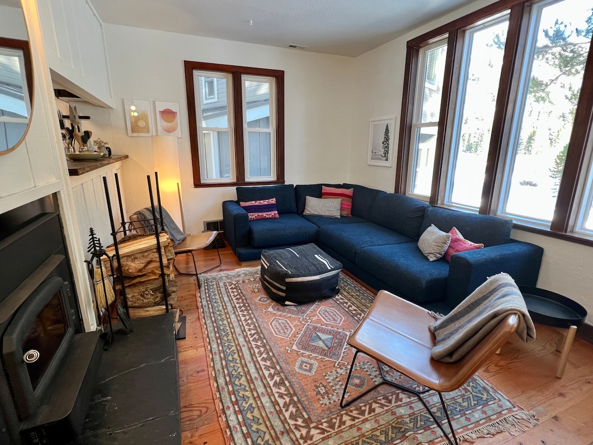 Cozy up to the fire after a day in the snow, in this newly renovated cabin with views of the meadow and Red Cliffs. Our place is a short, easy walk to the lifts and directly on the meadow. Enjoy the ski terrain in the winter, plus hiking, biking and kayaking the rest of the year. We recently installed a new quartz and butcher block kitchen countertop, new appliances, and a fully renovated full bathroom. We just purchased a new corner couch, making the space even more comfortable.