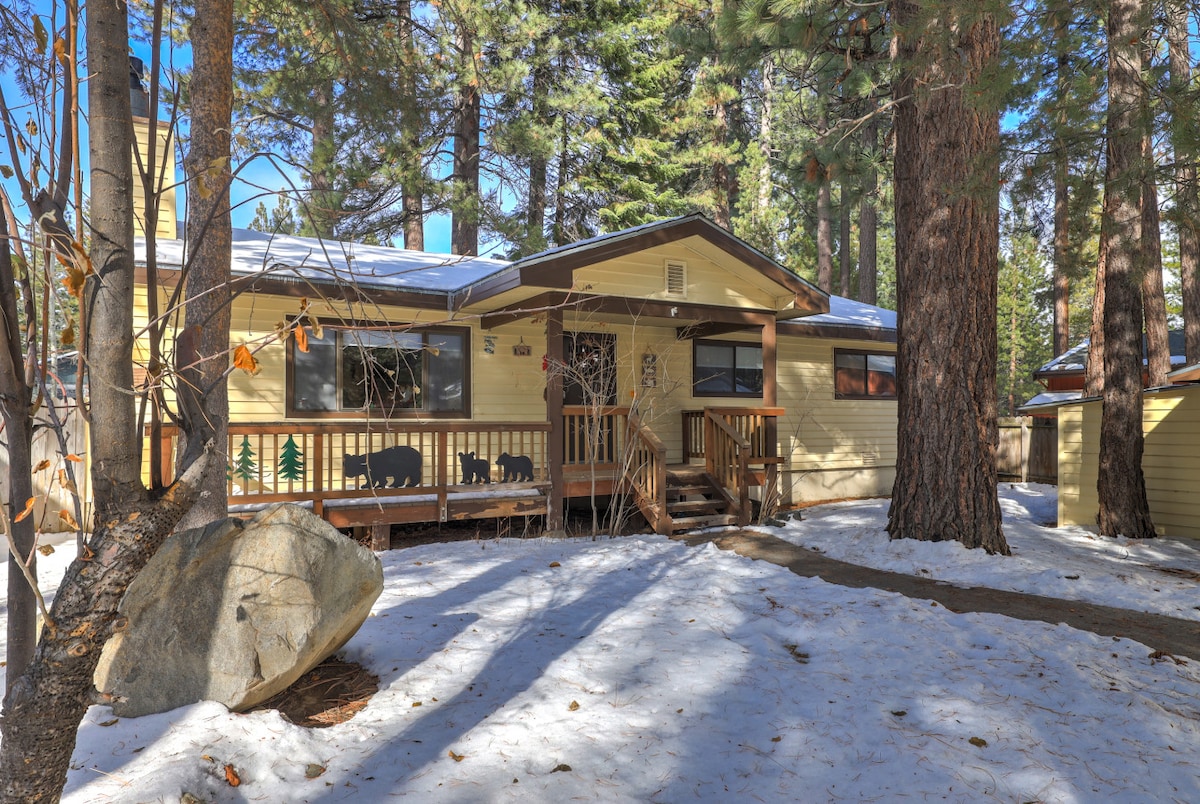 Beautiful bear theme, in Montgomery Estates, 4-beds/3-baths, w/ timeless antiques. 2,562 sq ft, a dreamy winter retreat. Indulge indoors with music, cook, play pool/pingpong, & cozy TV nights. Backyard turns into a snowy playground for snowball fights & snowman-building with loved ones. After chilly adventures, soak in the hot tub, and lose yourself in mountain views from the back deck under breathtaking sunsets. The Lake, Heavenly, and State Line are just a 10-minute drive away!