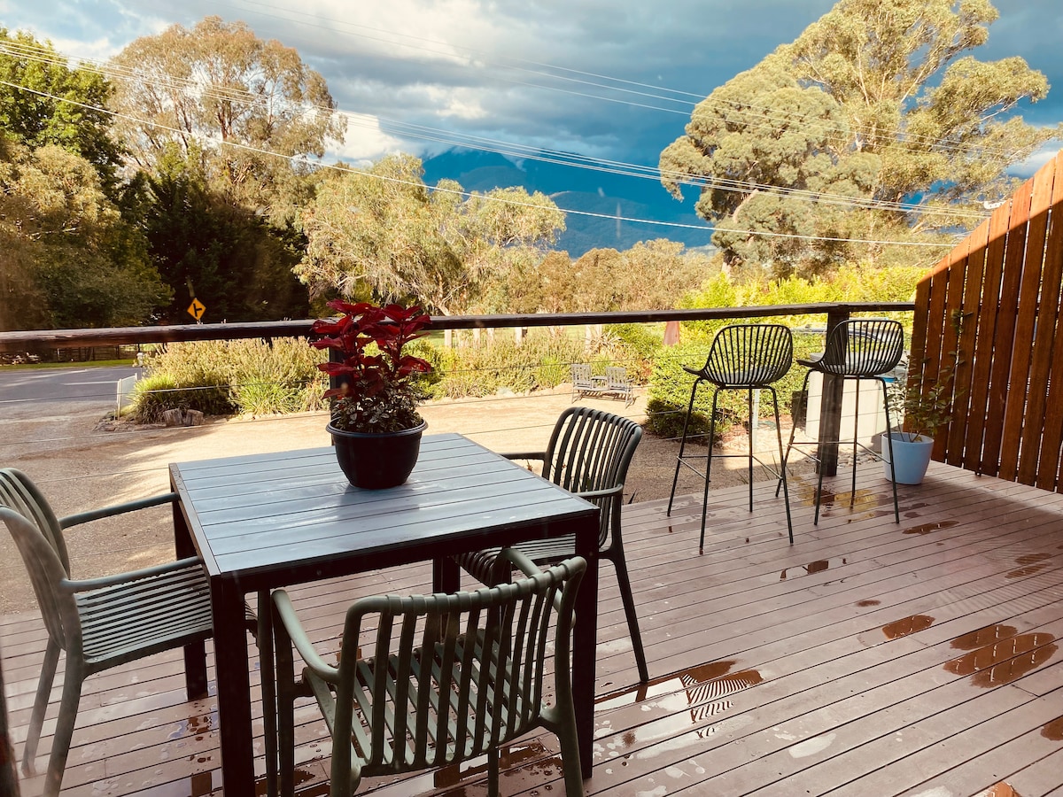 Welcome to our cosy two-bedroom hideaway in the heart of Harrietville. Enjoy a comfortable living area, kitchenette/dining, modern bathroom, and a wood fired heating for a relaxing stay. The balcony is perfect for cooking on the BBQ, or savouring your morning coffee and afternoon drinks. You will love the local food and coffee, plus the nature right at your doorstep. (Please note cooking is outside bbq or oven/microwave)