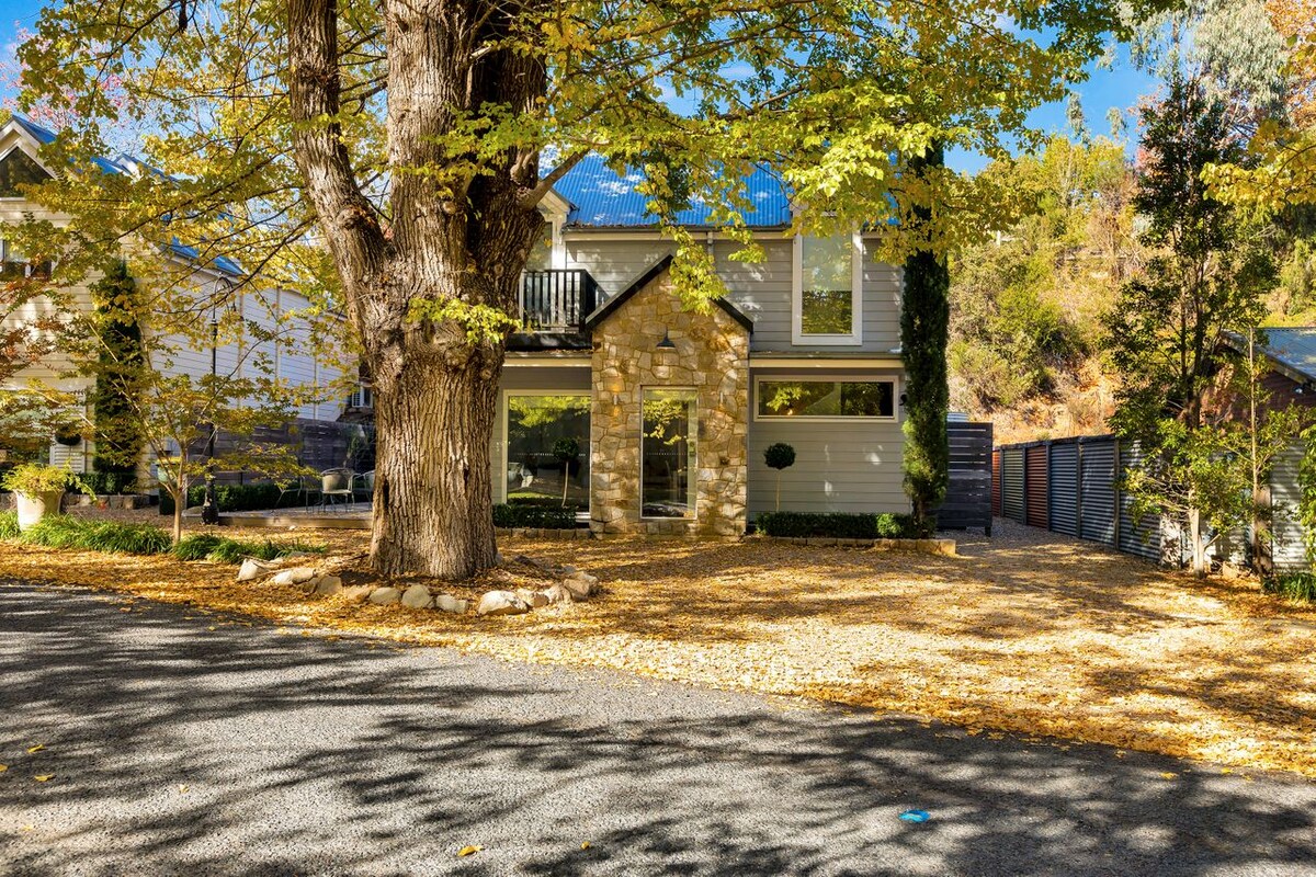 Romantic getaway for 2 .Unique design based on the local Tobacco Sheds in mind. Stand alone cottage backing onto the Canyon walk and Ovens river .Walk to town following the gorgeous Ovens river . Private entrance and parking .Private deck with gas bbq and al fresco dining . Open plan living area featuring a log fire, kitchen with electric stove top (no oven ) convection microwave , 3/4 fridge /freezer .Upstairs bedroom includes a king size bed ,separate toilet ,luxury spa and separate shower .