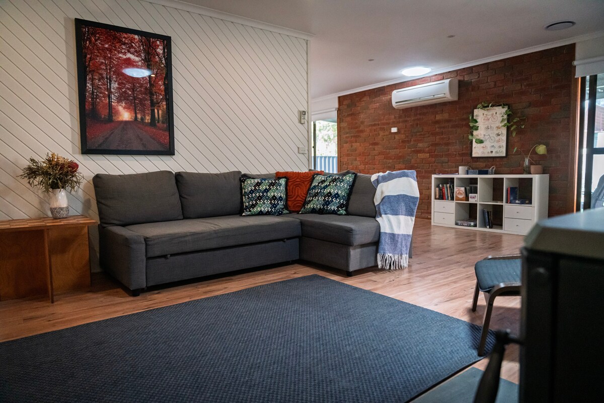 We love to share our alpine home with people who are looking to get away from the bustle of the city and enjoy everything the region has to offer. Wake up to panoramic mountain views in our eco-friendly 3-bedroom home. The open lounge spills onto a deck—perfect for a sunrise coffee or sunset wine. Highlights: North facing passive-solar design Fast Wi-Fi, fireplace & board games Fully equipped cook’s kitchen Luxe linens & deep bath Breathe the fresh High Country air and unwind.