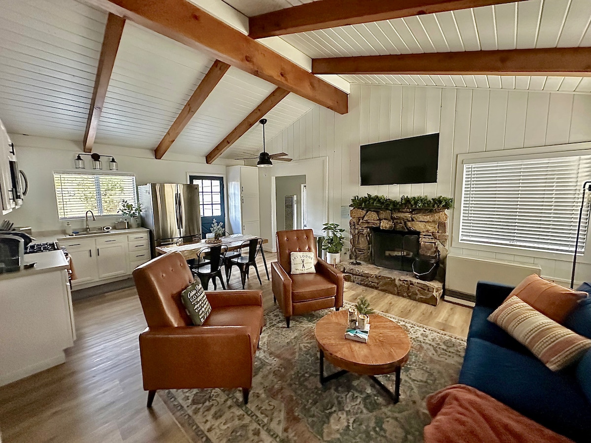 Welcome to Yuhaaviat Cabin. Sister to Yuhaaviat House. Both are aptly named after local tribes, translates to People of the Pines. Fully renovated to be your perfect modern mountain escape. Backed to national forest with a seasonal steam! All within walking distance to Village(.5 miles or 2 min drive). Best of nature and city conveniences. -Sleeps 6 -3 Deck areas with great views. -Backed up to forest -Wood burning fireplace -Full kitchen with all appliances -Laundry area -Central Heating