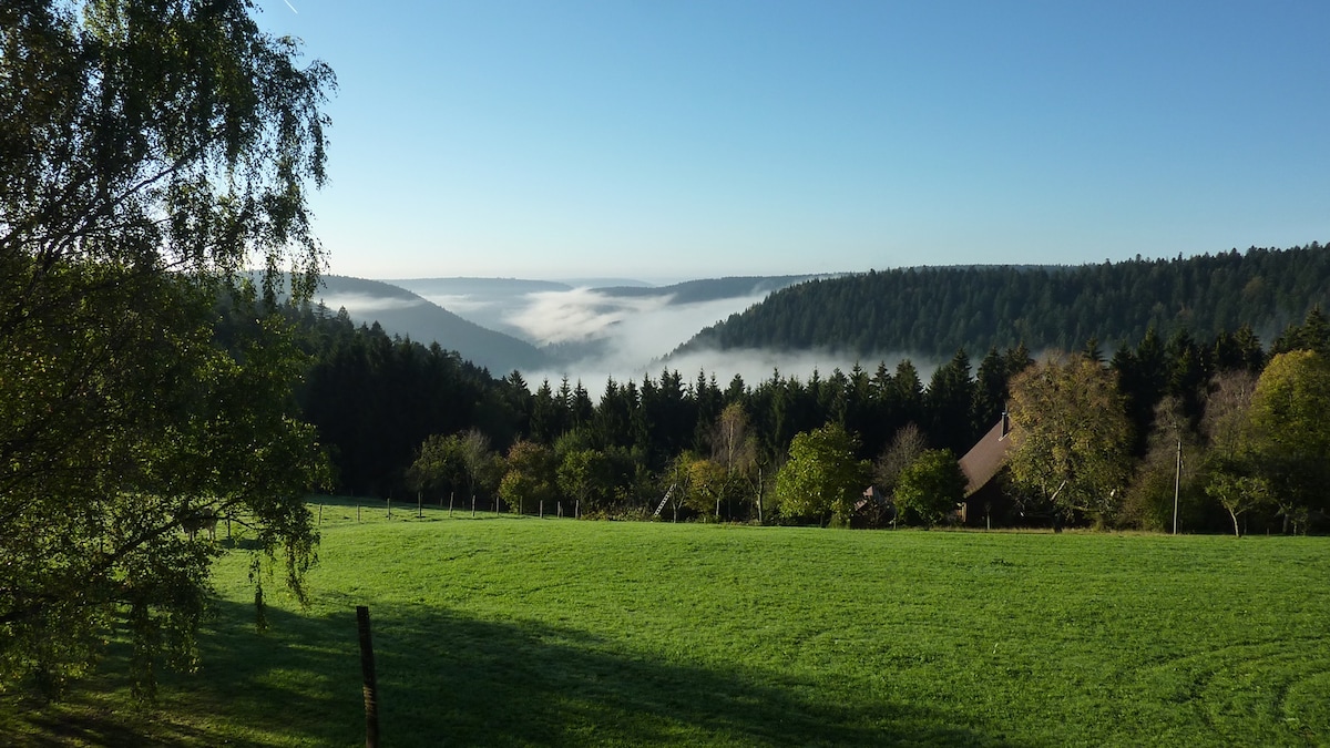 Our Heidi House is located in the middle of the Black Forest, in a small valley surrounded by green meadows. Next to the Heidi house is the farm we live on. The Heidi house is detached and has a separate entrance, so your privacy is guaranteed. The farm is located at the end of a road, with no traffic passing through, and is surrounded by meadows, fruit trees and forest. Our own stream and a small pond with a bench on the property invite you to relax.