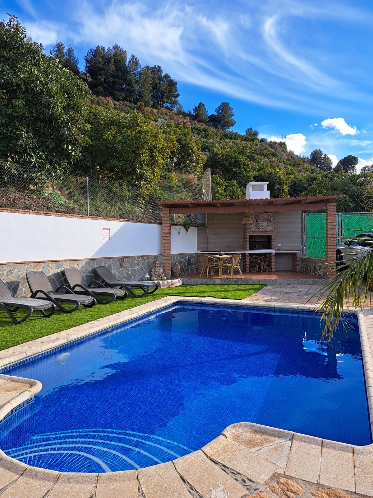 Original Andalucian olive tree farm recently renovated. The villa offers an amazing 50sq meters swimming pool with full privacy, 4 large bedrooms, 2 bathrooms, 5G remote working office, a unique rooftop terrace offering an astonishing 360 view and 2 patios. The house is 15min walk from the town & seating in a 2500 sq meter eco-garden (ideal for dogs) with best representation of local nature: Olive, oranges... You can enjoy them all! We apply an additional price per guest as of the 5th person