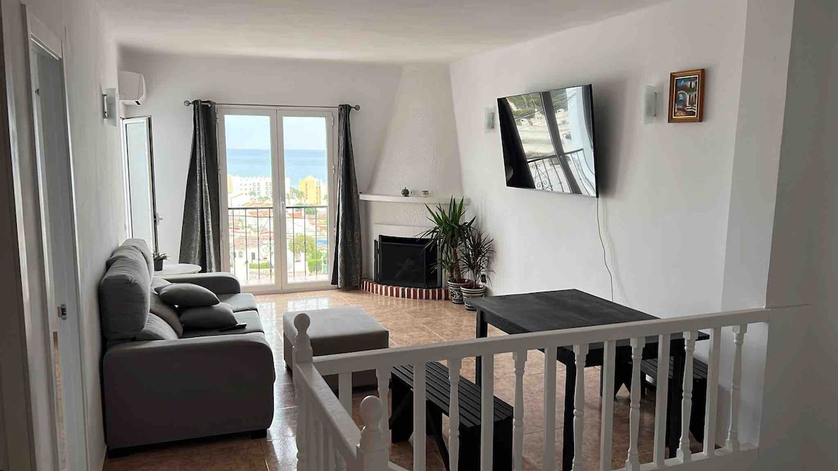 Alquiler vacacional en Nerja, en una calle tranquila a muy poca distancia de la playa (5 minutos andando a la playa más cercana), del Balcón de Europa, restaurantes, tiendas y zona de ocio. Está en el centro de Nerja. De 1 dormitorio, cuarto de baño (incluyendo lavadora, secador para pelo, toallas...), terraza con tumbonas y salón-cocina equipada. Wifi gratis. Dispone de aire acondicionado en la habitación.