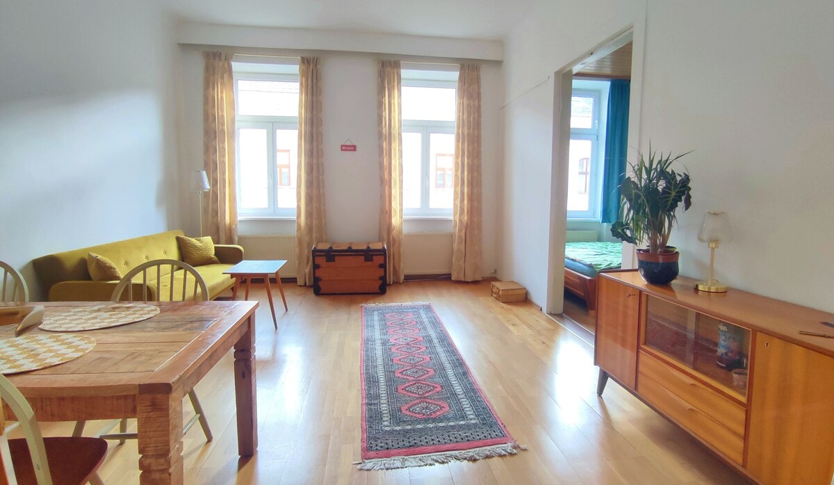 English: City life but make it comfy? Welcome to the Nest, where Vienna feels like a village while vibrant city life is only 10 minutes away! The spacious flat offers every amenity your heart desires- fast internet, a large comfy bed, AC, a cozy couch for long movie nights and a well equipped kitchen for cooking experiments - you basically don't need to leave the house in all pandemic fashion style.