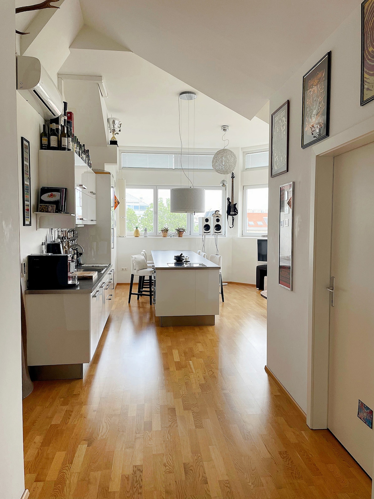 Splendid apartment in historical building, 1909, last floor with two roof-decks, panoramic views and perfect natural light atmospheres, spacious rooms with high ceiling, cable TV, WI-FI, open living room with kitchen as well as chilling room for guests in Vienna. Parquet. Spacious bath room with bathtub. Toilet in extra room. Very charming place in one of the most beautiful areas of Vienna with plenty of history around (museums, restaurants, bars). Very close to the city center.