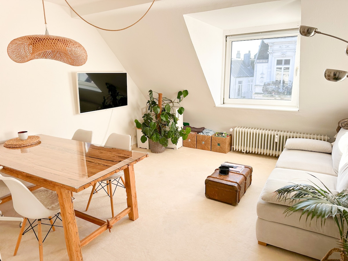 You're in Hamburg for a limited time period or you are a weekend commuter looking for a nice home temporarily? Sutje Bude is a cozy 40sqm freshly renovated fully equipped 1- room apartment with its own entrance. It has a combined living/ sleeping room, a separate kitchen and a bathroom (for your usage only) as well as a west balcony. The bright apartment is located on the 3rd floor of a traditional Rotlkinker building in the popular district of Barmbek-Süd close to Winterhude.