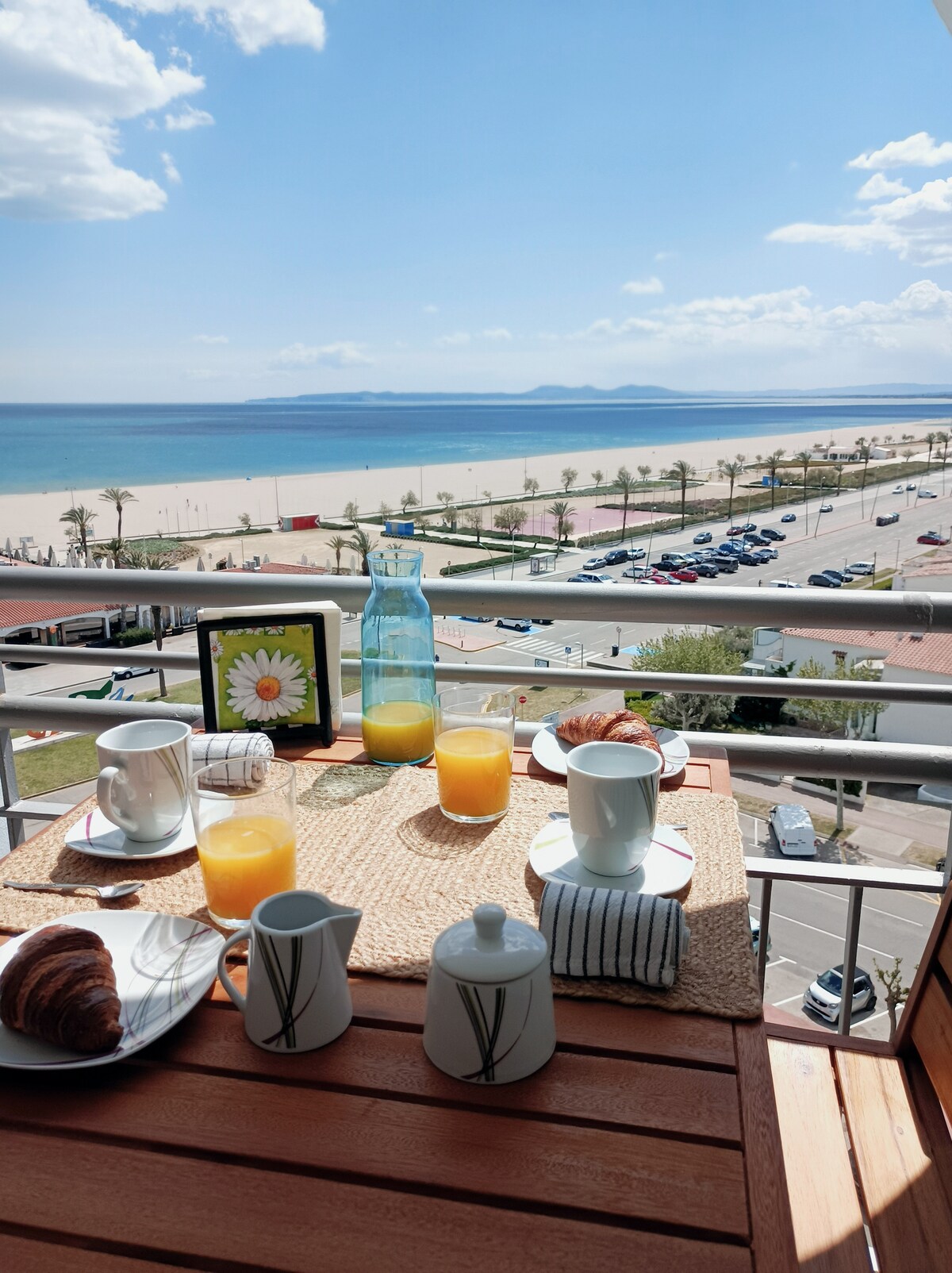 Détendez-vous dans cet élégant logement calme et spacieux : Studio 55 M2 dont Terrasse 7 M2 pouvant se fermer selon la météo, offrant une vue spectaculaire sur la mer et sa plage, il se trouve au 8 ème et dernier étage avec son palier privatif, au pied de l' édifice parking gratuit avec recharge électrique, climatisé, wifi, nombreux rangements, situé à 50 m de la plage et à proximité à pieds des restaurants et commerces, pour votre confort literie 160 X 200 avec draps et serviettes de toilette.
