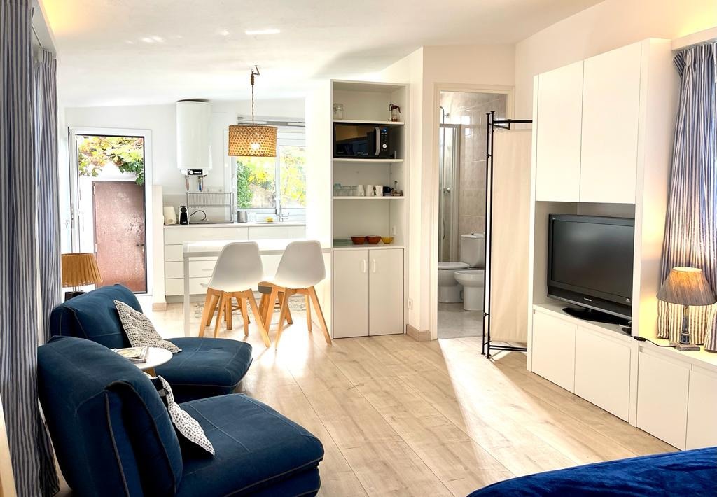 la casita de patio, es el resultado de un sueño. Situada junto a la piscina en el patio de la casa principal, consta de dos estancias. En la preciosa entrada se encuentra un inmenso vestidor. Desde ahi, accederás a un espacio diáfano en el que no encontrarás a faltar de nada. 2 terrazas para tu uso exclusivo La piscina, barbacoa, el solárium y el patio son compartidos con mi nieta y conmigo. En verano puede coincidir también mi familia, siempre con respeto a la privacidad de los huéspedes.