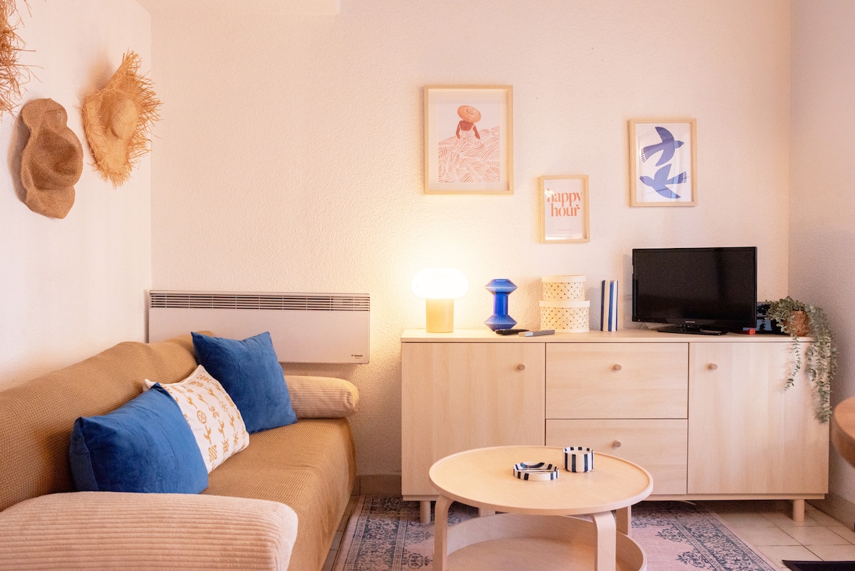 Studio lumineux meublé de 32m2 climatisé en plein cœur du Boulou, à deux pas de toutes commodités. Volets électriques et doubles vitrages. Wifi gratuite, fibre optique. Plusieurs parking public gratuit, à 4 minute à pied de l’appartement. Situé entre mer et montagne de belles ballades vous attendent (site historique de la bataille du boulou…) A 15 minute de l’Espagne, de Perpignan, Argelés-sur mer et de Céret. Proche des cures thermal, du Casino et de la piscine municipal.