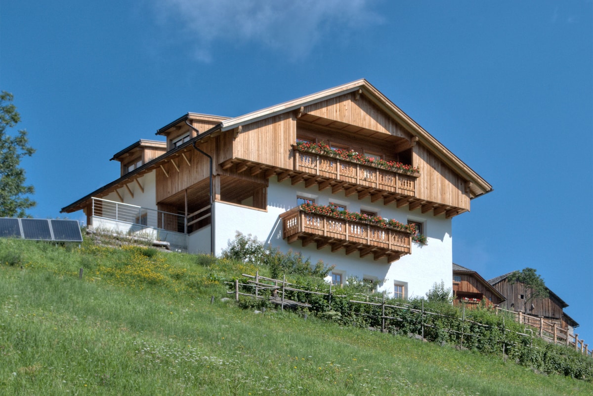 Unweit der großen Tourismuszentren wie Alta Badia und Kronplatz, hat es unser Dorf geschafft, den typischen Lebensstil der Bauern aufrechtzuerhalten, den Kontakt mit der Natur und abseits von Verkehr und Stress zu halten. Die Wohnung, die zu einem Bauernhof gehört, wird von Genovefa und Franz gemeinsam mit ihren Kindern verwaltet. Die Gäste schätzen diesen Ort für die isolierte Lage und die spektakuläre Aussicht. Wenn Sie Ruhe und Entspannung suchen, sind Sie hier richtig. Willkommen!