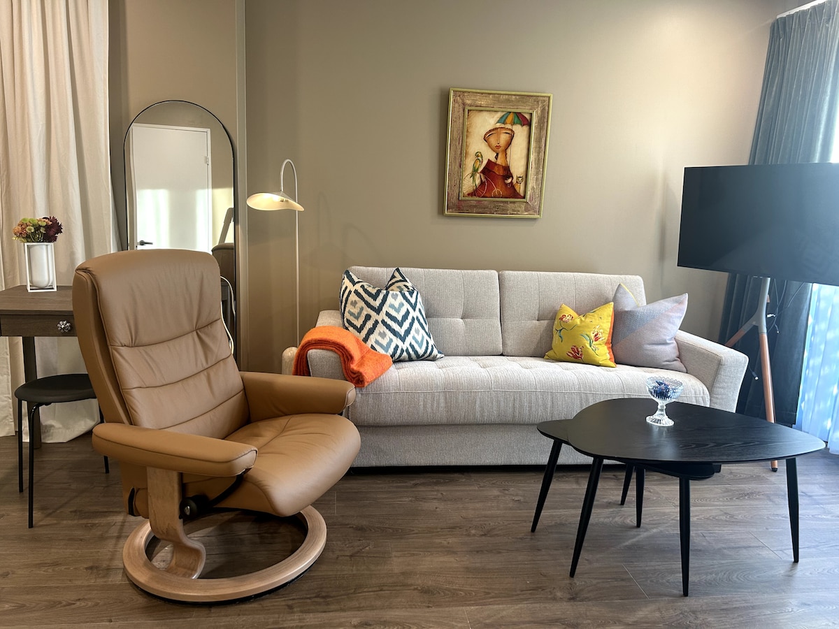 Velkommen til vårt koselige og praktiske studio i Alta! Perfekt for par, små familier eller alenereisende. Den moderne leiligheten har egen inngang, god takhøyde og alt du trenger: komfortabel seng, sovesofa, fullt utstyrt kjøkken og romslig bad med vaskemaskin og gulvvarme. Ligger i et rolig strøk, nær turmuligheter, Alta museum og 5 minutters kjøretur til sentrum. Parkering rett utenfor. Et hjem borte fra hjemmet – vi gleder oss til å ønske deg velkommen!