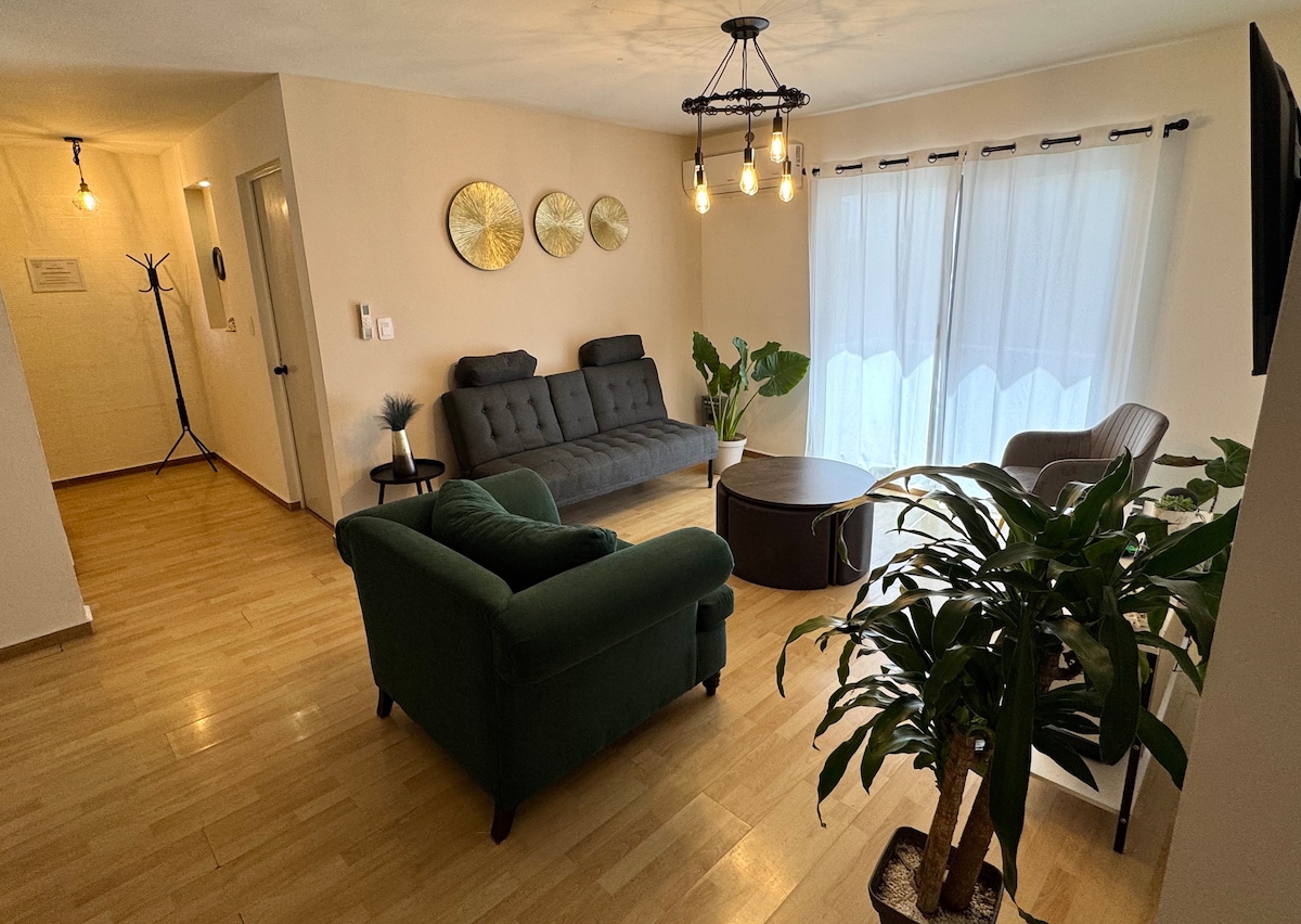 Depa en planta baja, limpio y cómodo, cerca de todo, verde, sin escalones, cochera privada techada. A 3 cuadras del Mall Altama, a 6 cuadras de la central de autobuses, a 6 cuadras de HEB. En carro: a 5 min. de la Laguna, a 10 min. de la Plaza de Armas, a 20 min. de Playa Miramar.