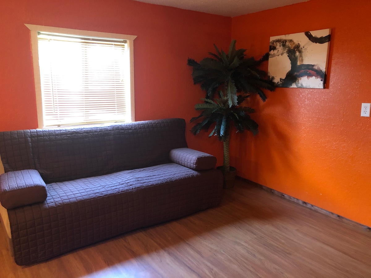 Kick back and relax in this calm, stylish space. It has queen and twin beds and also has a full bathroom with shower. AC and heat are provided as are towels and linens. A mini fridge and microwave have just been added. Finally, it has an HDTV with WiFi for enjoying movies or other entertainment.