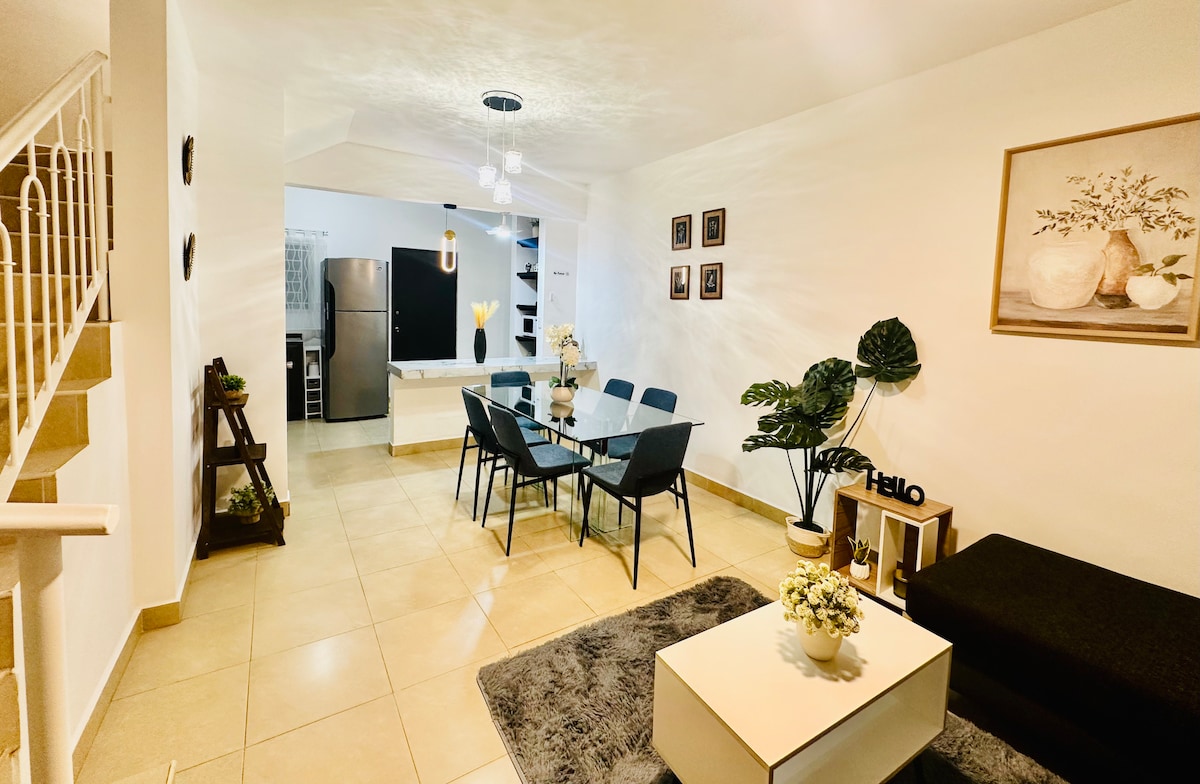 🏡 Acogedora casa en fraccionamiento seguro 🔐 🛏️ 2 recámaras con minisplit, abanico de cielo y 📺 Smart TV (Netflix) — Recámara 1; 1 cama matrimonial 🛌 Recamara 2.- 2 individuales 🛏️. 🚿 1.5 baños | 🛋️ Sala con Smart tv| 🍽️ Cocina equipada con refri, microondas, horno eléctrico, cafetera y utensilios. 🧺 Cuarto de lavado con lavadora y secadora. 🚗 Estacionamiento para 1 auto y entrada autónoma 🔑. Ideal para familias o estancias de trabajo.