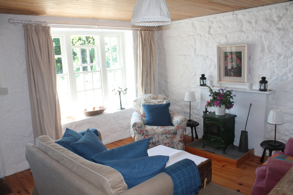 The Perch, a stone walled cottage in tiny Kilquiggin village overlooks the rolling hills of Counties Wicklow, Wexford and Carlow. Beside the Wicklow Way 7km south of Shillelagh. Dog friendly. Convenient to Ballybeg House, Lisnavagh House and Mount Wolseley. One large double bedroom upstairs and a sofa bed downstairs, which sleeps 1 adult or 2 children. Large bathroom. Sitting room with wood burning stove and spacious kitchen with back door to garden. Own transport essential.