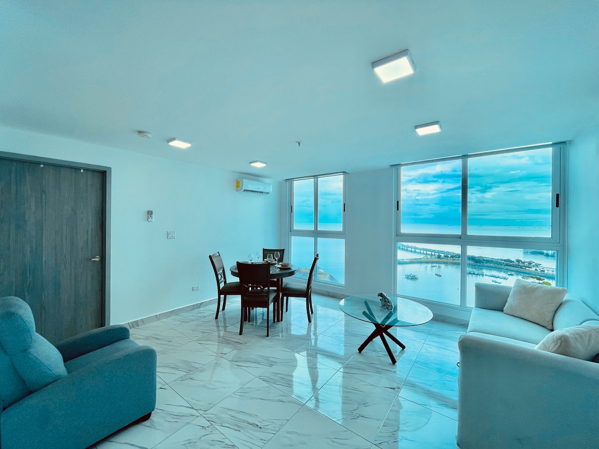 Moderno apartamento de lujo en la Cinta Costera, ideal para ejecutivos, parejas o familias. Dormitorio amplio con vista al mar, baño privado, cocina y electrodomésticos. Diseño elegante con seguridad 24/7, gimnasio, piscinas, 4 restaurantes, bar y Sky Lounge. Ubicación privilegiada cerca de supermercados y excelente oferta gastronómica en Ciudad de Panamá. PANAMA