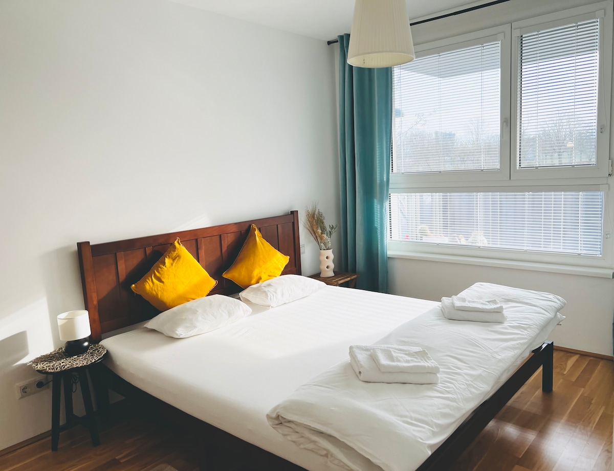 Very bright spacious apartment, located on the sunny side of the building and also is in walking distance to the Danube. Very calm, family place:) There are 2 separate bedrooms and a living room with sofa with bed-function. Apartment is 5 min away from city center (Stephansplatz) using public transport. Also there is a direct train from airport right in houses neighborhood. All grocery stores are in 1 min walkway. (Billa, Spar)