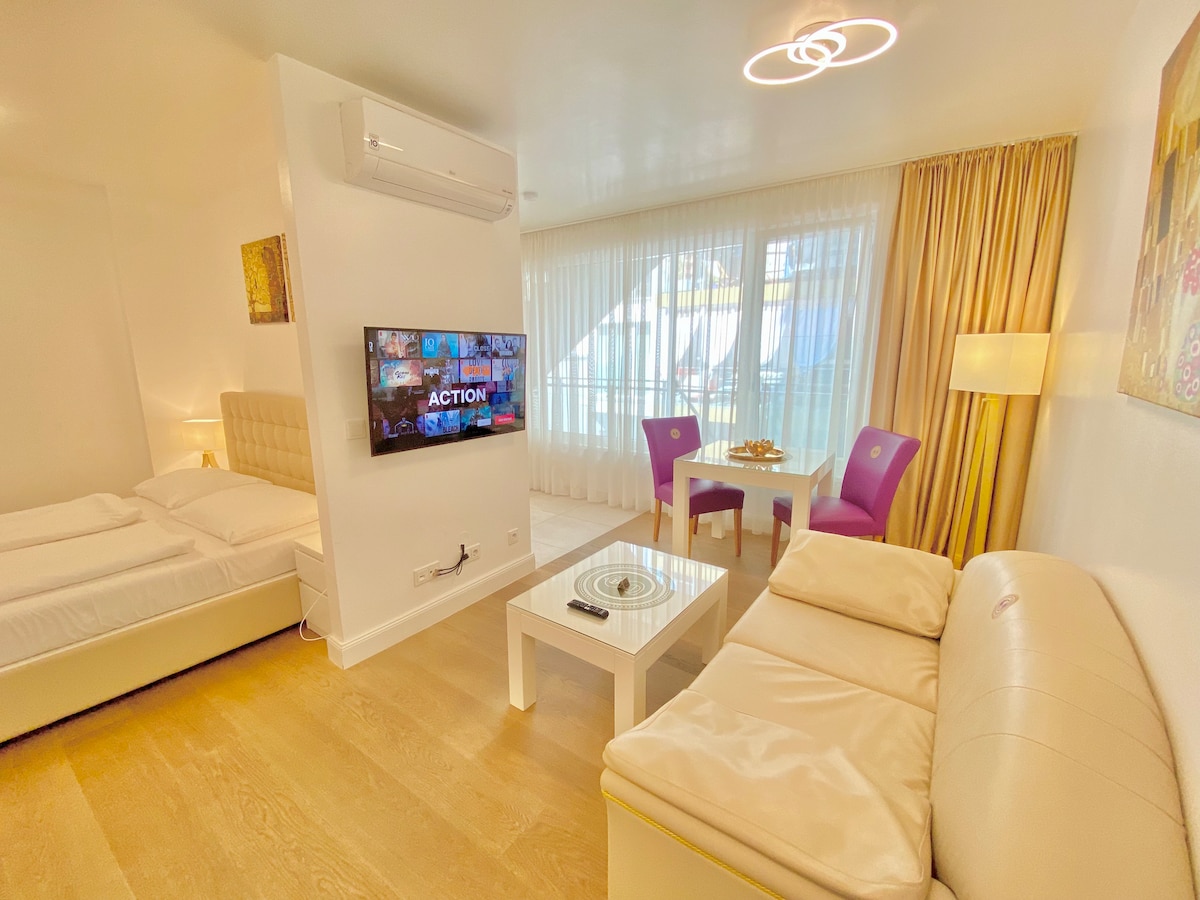 Erlebe luxuriöses Wohnen in unserem High-End-Apartment mit privatem Balkon und atemberaubendem Skyline-Blick! Genieße Smart-TV mit Netflix, ein hochwertiges Soundsystem und edle Möbel. Im Sommer (Saisonstart & -ende wetterabhängig) steht dir ein Pool zur Verfügung, ab Mai 2025 auch ein Fitnessstudio. Ein Supermarkt im Gebäude sorgt für höchsten Komfort. Nutze außerdem die kostenlosen Co-Working-Spaces und die Gemeinschaftsterrasse. Perfekt für einen stilvollen Aufenthalt nahe der Alten Donau!