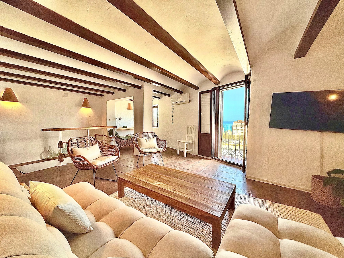 A charming old townhouse, fully renovated to the highest standard, with stunning sea and mountain views from the 25 sqm terrace. The house is located just behind the main street, Calle Miguel, in the picturesque Old Town, just a stone's throw from the beautiful church at the square. The house is fully equipped with all the kitchen essentials needed to prepare breakfast, lunch, and dinner. On the terrace, you'll find a dining table with chairs, sun loungers, and a lounge sofa for relaxing moments