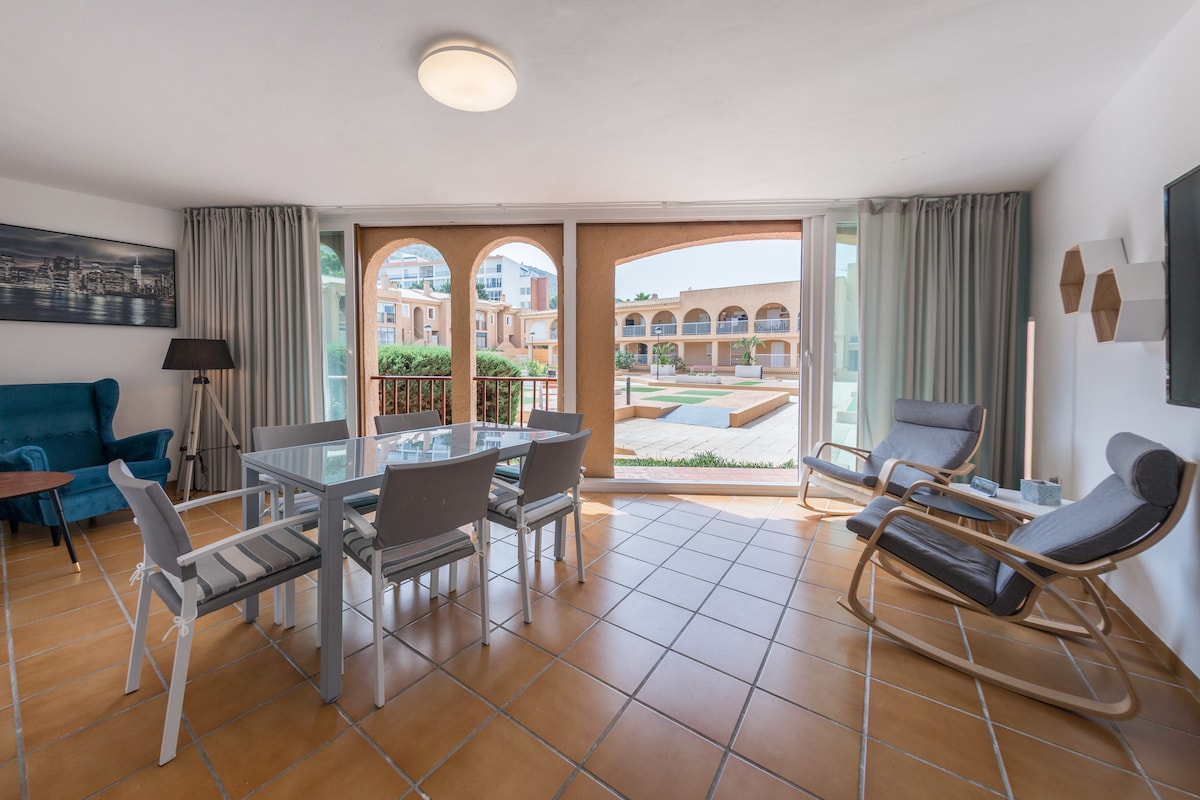 Apartamento con una ubicación inmejorable, podrás disfrutar de las vacaciones sin mover el coche, ir a las calas, playa del Arenal, playa de piedras, bucear, ir a la piscina todo a menos de 5’ el apartamento está en un complejo muy tranquilo y con vistas a la Bahía, dispone de todo lo necesario para que tu estancia en Javea sea muy agradable !!