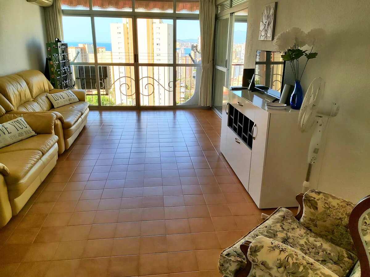 El apartamento se encuentra situado a 200 metros del casco antiguo del pueblo. Es una tercera planta con orientación sureste. Dispone de 1 habitación principal con cama de matrimonio, baño, cocina y salón con sofá cama de apertura italiana. Todo el apartamento dispone de tarima flotante. La joya principal es su terraza, donde podréis disfrutar de maravillosos momentos, con vistas a las montañas de Aitana y Aixortà, y al fondo el pico de Bernia y el mar, Esperamos que os encante.