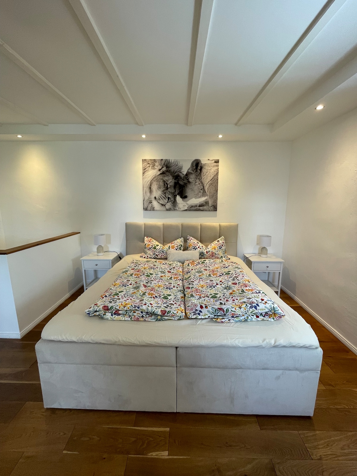 Das lichtdurchflutete Loft mit einer riesigen Panoramaterrasse ist frisch renoviert und befindet sich in dem schönen Detmolder Ortsteil Berlebeck direkt an der Fernwanderroute "Hermannsweg". Das Haus verfügt über einen großen Wohn,-Essbereich mit hohen Decken und großen Fensterfronten. Das Schlafzimmer mit einem Doppelbett und die offene Galerie mit 2 Einzelbetten laden zum Ausruhen ein. Zusätzliche Extras wie eine Wallbox und eine Klimaanlage lassen keine Wünsche offen.