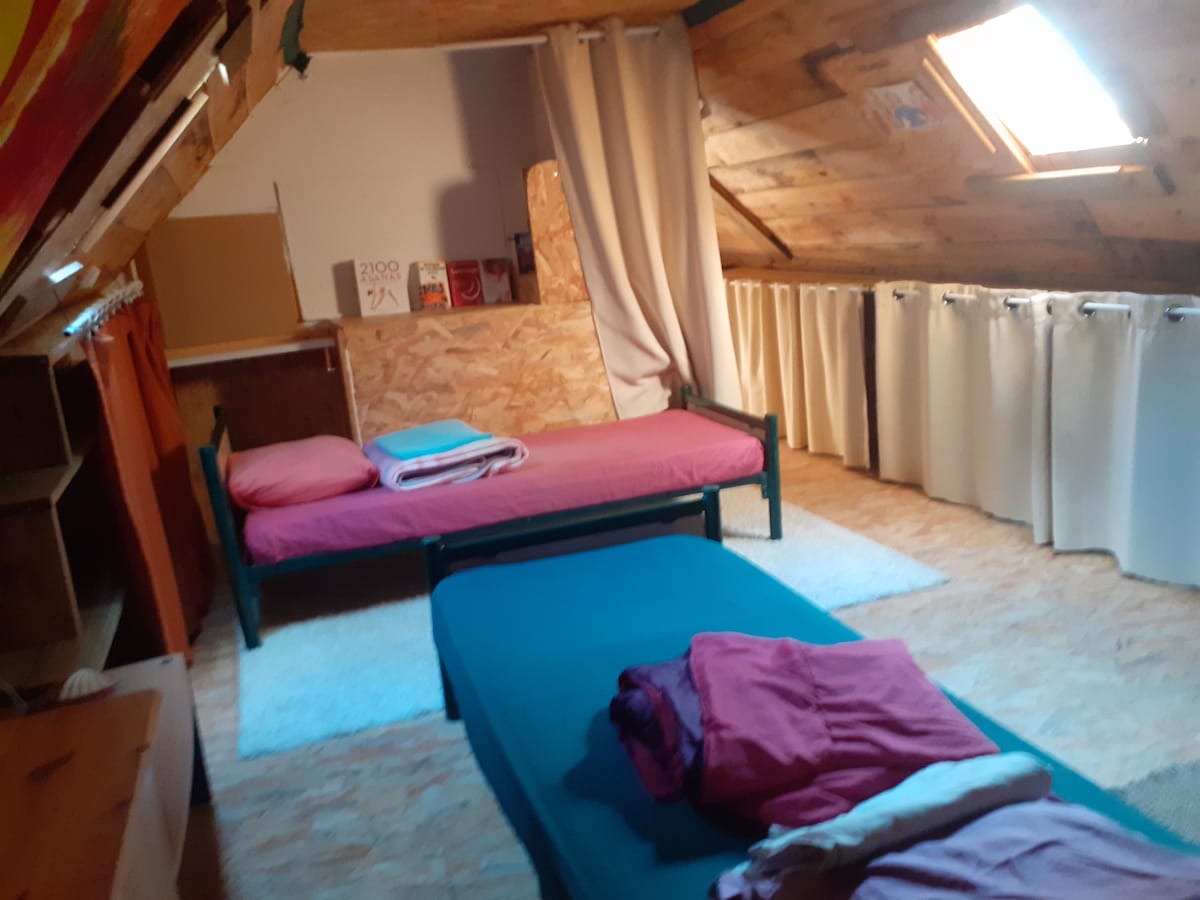 Alcôve lit queen size Vous passerez par notre entrée pour accéder au 1er étage de notre ancienne ferme de 1830 aux pieds des Pyrénées. . Dans un loft dortoir de plus de 50m2 pour 8 places max (2 alcôves et 2 Mezzanines) SdB commune. Les WC sont sur le palier donc séparés. Serviettes et draps non inclus dans le prix 7€/lit. Un dîner à 14€/pers et un petit déjeuner à 7€/pers peuvent être réservés la veille. Edenvik Capvern 11km Aquensis Bagnères de Bigorre 27km Balnéa Loudenvielle 34km
