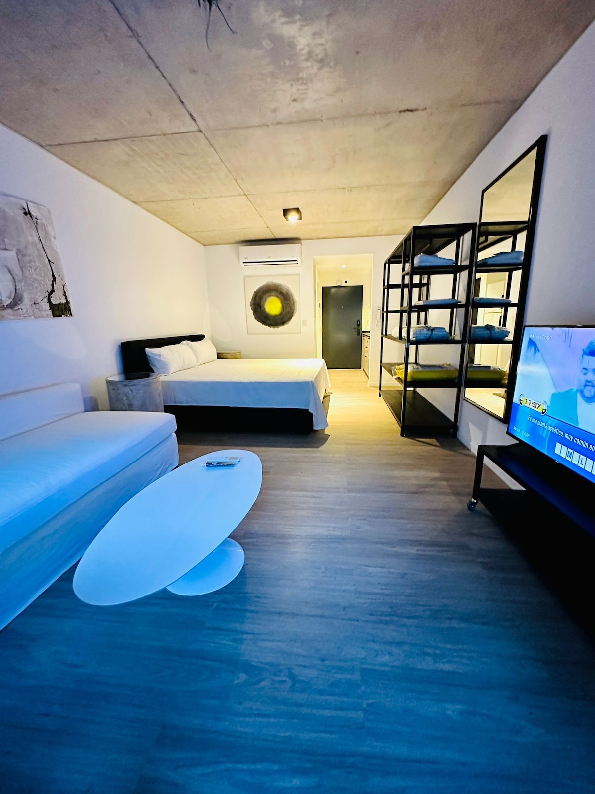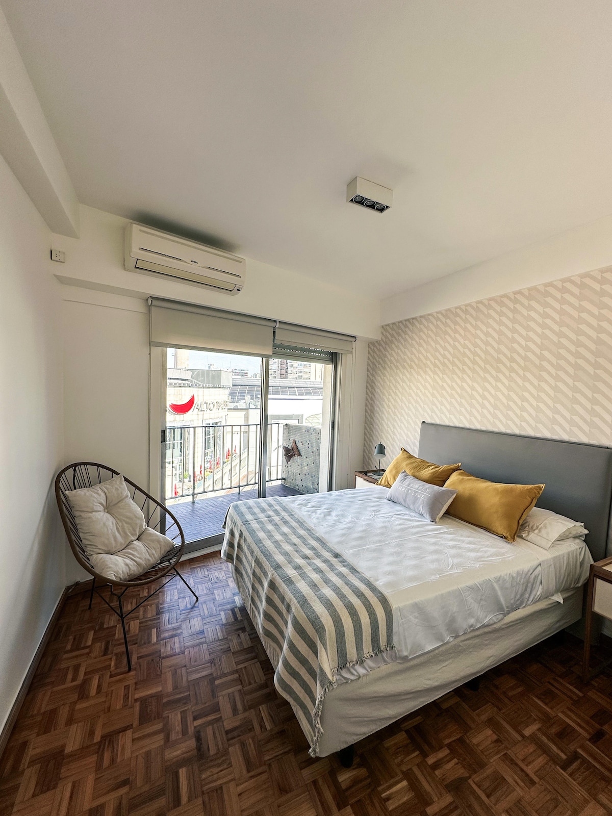 Amplio monoambiente, con cocina separada, totalmente remodelado con todo el estilo y las comodidades en la mejor ubicación de Buenos Aires. Frente al Alto Palermo shopping, cerca de parques, principales avenidas y subte . Cama dos plazas, Smart TV, baño completo con bidet, ducha y secador de pelo, cocina con Heladera y Freezer, tostadora, cafetera y microondas con grill. Cortina blackout automáticas con control remoto. Aire acondicionado Frío Calor.