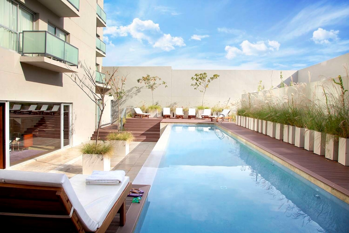Discover your perfect retreat in Buenos Aires. This modern, bright, and silent studio is designed for rest, located in a high-end building surrounded by greenery with 24/7 security. It is the ideal base to explore the city's best cafes and parks, knowing that a pool, sauna, and total relaxation spaces await you upon your return.