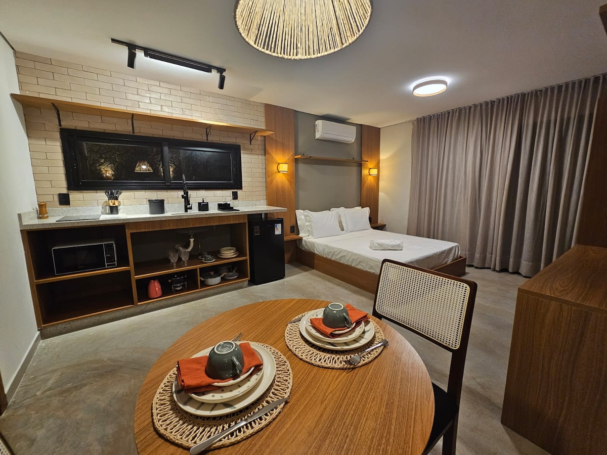 Brisa do Cerrado Studios reúne oito studios novos, minimalistas e contemporâneos, projetados para oferecer conforto acima da média em Alto Paraíso. Localizados no bairro Eldorado, a 2 km da avenida principal, estão próximos de cafés, restaurantes e lojas. Cada studio conta com ar-condicionado, cozinha completa, estacionamento e acabamento de alta qualidade — ideal para quem busca praticidade, beleza e bem-estar na Chapada dos Veadeiros.